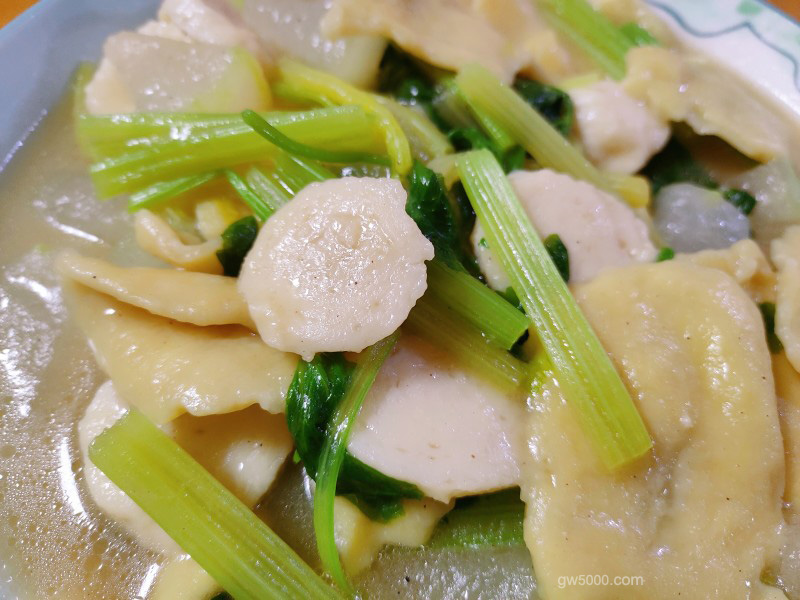 - 15待所有面片下锅后,翻动一下,以免黏连。