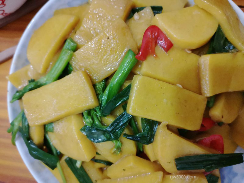 黄元米果建议切厚点,炒的过程比较干的话可以加点水。
