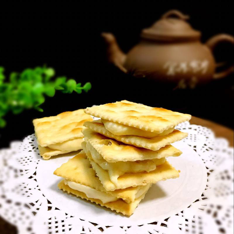 11然后再盖上另一块苏打饼干,稍稍压紧
