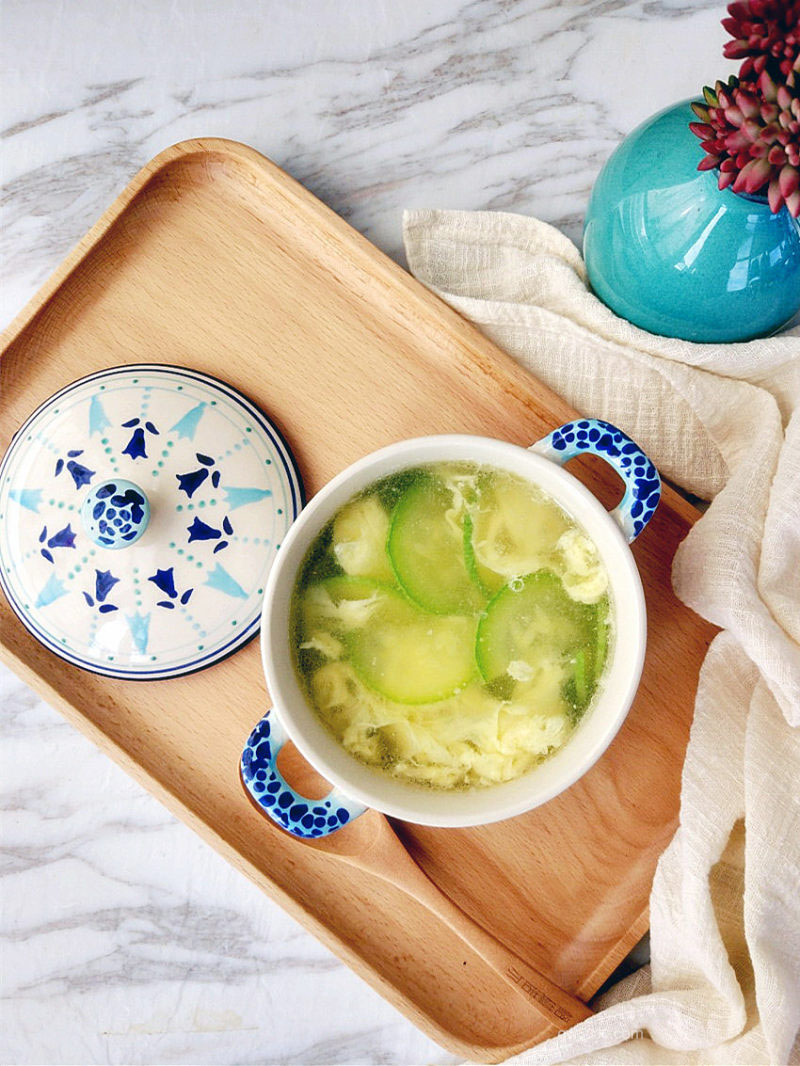 - 4下西葫芦片,小火煮至七八成熟,淋入蛋液成蛋花,出锅前加少许鸡粉调匀即可