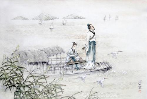被逼无奈的范蠡,只得偕西施乘一叶扁舟,逃到风光秀丽的东钱湖,最后隐居于伏牛山下,过起了与世无争、优哉游哉的生活。平时里,偕西施轻波泛舟,抑或钓鱼自乐,好不逍遥,并且自喻“逃诛公”,掩人耳目。