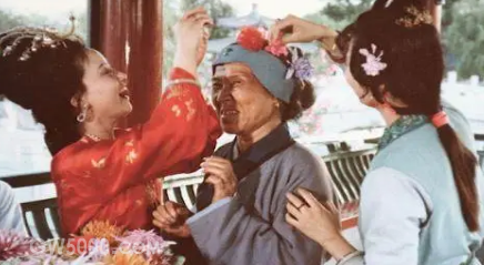 王熙凤把所有花儿都往刘姥姥头上招呼,很快,一个花团锦簇的刘姥姥别致的出场了,成功博得贾母及现场所有的人大笑开怀。