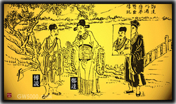 这可怎么办才好呢?武丁想啊想啊,终于有一天,武了想出了一个绝妙的主意。商朝的时候,贵族们都很信神信鬼,不论大事小事,行动之前都得通过占卜询求鬼神的意向。武丁决定利用贵族们这种普遍迷信鬼神的心理,将计就计,来实现他的计划。有一天夜半三更的时候,武丁忽然哈哈大笑,并不断地说着梦话。旁边的人都被惊醒了,他们连忙将武丁唤醒,问他怎么回。武丁睁开双眼,激动地说:"我刚才梦见先王成汤了,成汤为了振兴我们商朝,向我推荐一个像伊尹一样贤能的人,他的名字叫傅说。商朝有救了!商朝有救了!"贵族们一听,信以为真,连忙根据武丁对傅说相貌特征的描绘,派人四下去寻访。