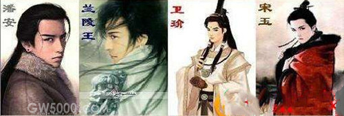 古代四大美男同中国古代的四大美女一样,众说纷纭。最常见的说法是:潘安、兰陵王、宋玉、卫玠。