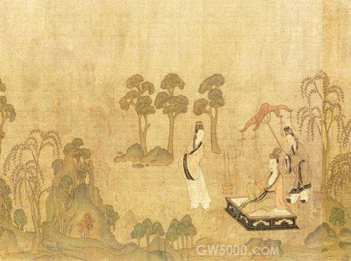 中国十大传世名画之一。原《洛神赋图》卷,东晋著名画家顾恺之绘制(宋摹),绢本,设色,纵27.1cm,横572.8cm。这幅画根据曹植著名的《洛神赋》而作,为顾恺之传世精品。全卷分为三个部分,曲折细致而又层次分明地描绘着曹植与洛神真挚纯洁的爱情故事。此图卷无论从内容、艺术结构、人物造形、环境描绘和笔墨表现的形式来看,都不愧为中国古典绘画中的瑰宝之一。