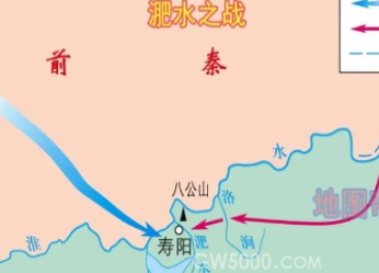 十月,秦军渡过淮水,攻陷寿阳(今安徽寿县)。晋朝派去援助寿阳的胡彬水军,听闻寿阳失陷,退守硖石。苻融命将军梁成帅大军五万进攻洛涧,载断淮水通路,意在截断胡彬的退路,也使晋军不得从淮水水路西进。谢玄大军自东而西推进,在到达洛涧以东二十五里处停止前进。胡彬派人给谢玄送信说:“今贼盛,粮尽,恐不复见大军。”(《资治通鉴》卷一○五晋孝武帝太元八年,下同)送信人被秦军捉去。苻融赶快送信给苻坚说:“贼少易擒,但恐逃去,宜速赴之。”苻坚见信,留大军于项城,带轻骑八千,赶到寿阳。