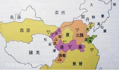 从公元304年巴氐族李雄建立成汉和匈奴贵族刘渊建立汉国,316年灭掉西晋,到439年鲜卑拓跋部统一北方,这100多年里,北方各民族相互争战,先后建立了前赵(匈奴)、后赵(羯)、前燕(鲜卑)、前凉(汉)、前秦(氐)、后秦(羌)、后燕(鲜卑)、西秦(鲜卑)、后凉(氐)、南凉(鲜卑)、西凉(汉)、北凉(卢水胡)、南燕(鲜卑)、北燕(汉)、夏(匈奴)、成汉(巴氐)等政权,总称十六国。