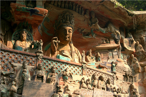 大足县,建于公元758年(唐乾元元年),隶属昌州。公元885年(唐光启元年),昌州由静南县迁治大足。至公元1279年(南宋末年),大足一直是昌州州治所在地。大足石刻中的"五山"摩崖造像即在这近400年间完成。