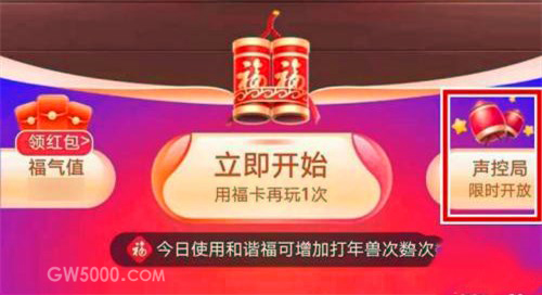 声控局为声音玩法,在解锁满堂彩鞭炮后即可开启,声控局每天有3次打年兽机会,也有机会获得福气值,周围环境噪音太大或普通话不标准,可能存在声音无法被识别的情况,同时也可能存在部分手机不支持情况,如遇问题,请检查或更换手机设备后重试。