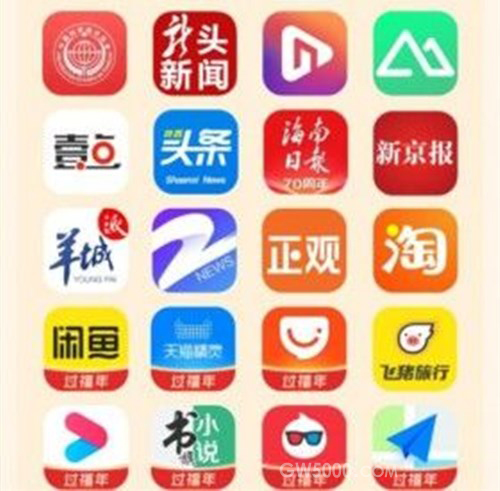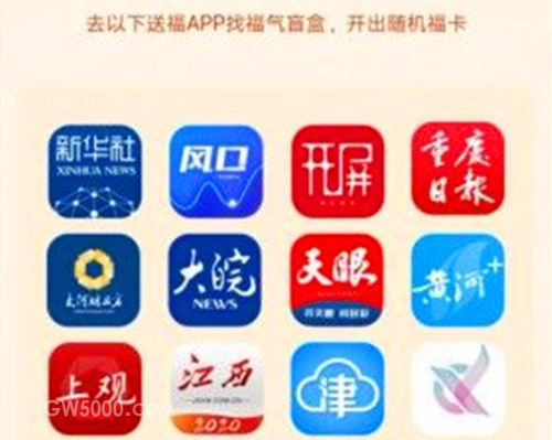 1、在送福类的app下面有个“过福年”的标识,用户们可以在这些APP内,随机开出福卡。