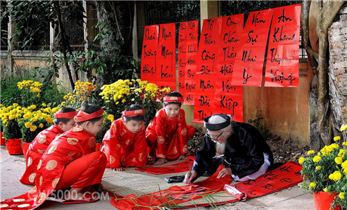 与中国一样,越南也是把春节当成最热闹、最隆重的传统节日。从农历12月开始,越南家家户户就准备置办年货。多年前,越南经济落后,老百姓的年货也比较简单,就像一句顺口溜所说的那样:“肥肉、腌菜、红对联;幡杆、炮竹、绿米粽。”现在,随着越南经济社会的发展,越南人的年货也越来越丰盛。