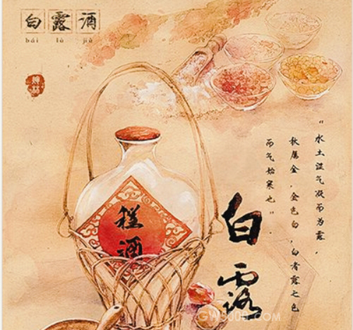 在苏南籍和浙江籍的老南京中还有自酿白露米酒的习俗,旧时苏浙一带乡下人家每年白露一到,家家酿酒,用以待客,常有人把白露米 酒带到城市。白露酒用糯米、高粱等五谷酿成,略带甜味,故称“白露米酒”。