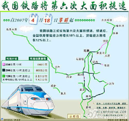 这 次大面积提速调图,无论是广泛性,还是技术的先进性,都是以往历次提速所不能比拟的。特别是在主要干线上,将开行时速200公里及以上的动车组,还将大面 积地开行5000吨级的货物列车。
