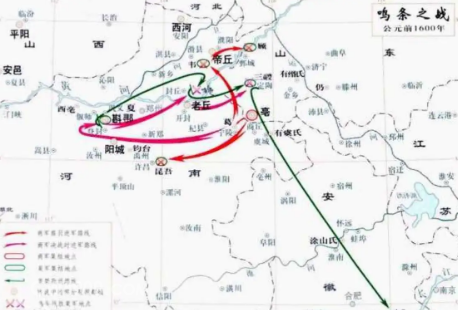 在约公元前16世纪,夏王桀的统治出现了危机。夏朝在东方的属国商,乘机先征服邻近的夏属葛国(今宁陵县北),保障商都南亳(山东曹县南二十里)的安全。又派重臣伊尹至夏王都城探测虚实。再采取分别翦除夏朝羽翼的策略,各个击破了位于夏、商之间的豕韦(今滑县东南)、顾国(今范县东南)、昆吾(今许昌)等夏朝属国,使夏王桀孤立无援。接着,商汤又率战车70乘、敢死士兵6000人攻夏王都。夏桀只好仓促率王师与商军战于鸣条,结果夏朝军队大败。这场战争成为夏王朝灭亡的转折点。战争的结果导致夏王朝灭亡,商汤建立了中国的第二个王朝商朝。