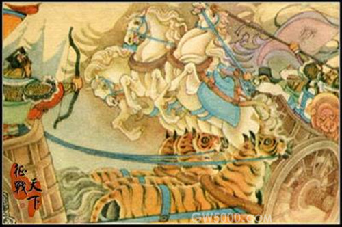 楚联军亦按左、中、右三军配置:陈、蔡军编为右军,实力较弱;一部楚军编为左军,战斗力较强;中军为楚军精锐,由子玉指挥。二十一年四月初二,决战开始。晋下军把驾车的马蒙上虎皮,首先向楚右军发起猛攻,陈、蔡军一触即溃,全军瓦解。这时,晋上军竖起两面大旗,并在阵后扬起尘土,佯装后退。子玉不察虚实,下令左军追击。待其突出之时,晋元帅先轸指挥中军向其暴露翼侧攻击,断其退路,晋上军亦回头夹击。楚左军大部被歼。子玉见两翼均败,大势已去,急忙下令收兵,退回楚地。城濮一战终以晋胜楚败而告终。战后,晋文公被周襄王策命为侯伯,一跃成为中原霸主。