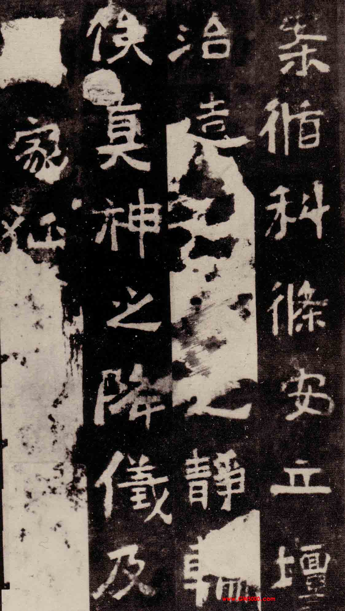 此碑为北魏太安二年(456年)立,正书,碑阳23行,行50字,碑阴7列,上2列字较大,计22行,下5列16行,字较小,各列行数不等。额篆书阳文4行共8字,侧刻唐大周天授三年(1692年)马元贞投龙简记。碑文内容为寇谦之修祀中岳庙併宣扬道教。碑今在河南登封县嵩山中岳庙。