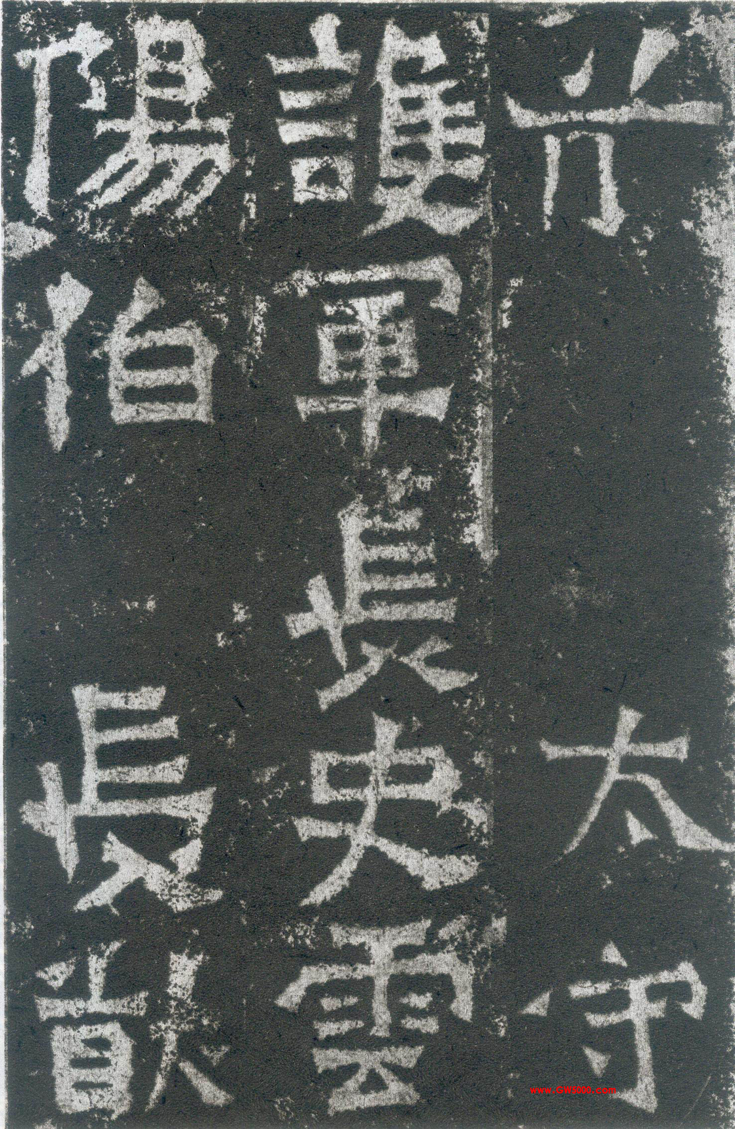 龙门二十品之《郑长猷造像题记》,造像龛位于古阳洞口上方南侧,共六龛,均为圆券形浅龛。分上、中、下三排,每排两龛,其大小不等。圆楣拱内刻卷草葡萄纹,主尊为交脚弥勒(已经残破)。左右二胁侍菩萨侍立。景明二年九月三日(公元501年)完成。 造像记位于佛龛右侧,高50厘米、宽35厘米,记景明二年郑长为亡父、母皇甫、亡儿士龙以及其妾陈玉女为亡母徐,各造弥勒像。碑文书法有上承汉隶、下启唐楷的重要意义。