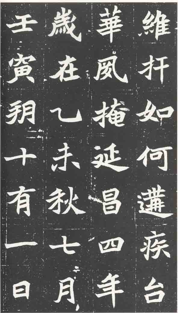 洛阳邙山地区为北魏皇室的墓葬地,曾先后出土过大批墓志。这些墓志的最大特点便是书体已是成熟的楷书,形体为斜画紧结;风格隽雅典丽,遒健庄重;笔法成熟,韵味涵泳;文体规范,书刻皆精,代表了当时主流书风的审美取向,为后来楷书的走向奠定了基础。 二0O二年出土于河南济源的北魏《元苌墓志》,即属于当时主流书风的一方楷书墓志。该墓志刻于北魏熙平二年,其书风与同一时期的“邙山体”风格相一致,显不出尚雅重法的总体趋势。这种主流书风在北方有着广泛的影响,明显地走向了雅化,与平城时期的北魏楷书相比,由质变文,由朴变精,由拙变巧,由俗变雅,走向了高度成熟。