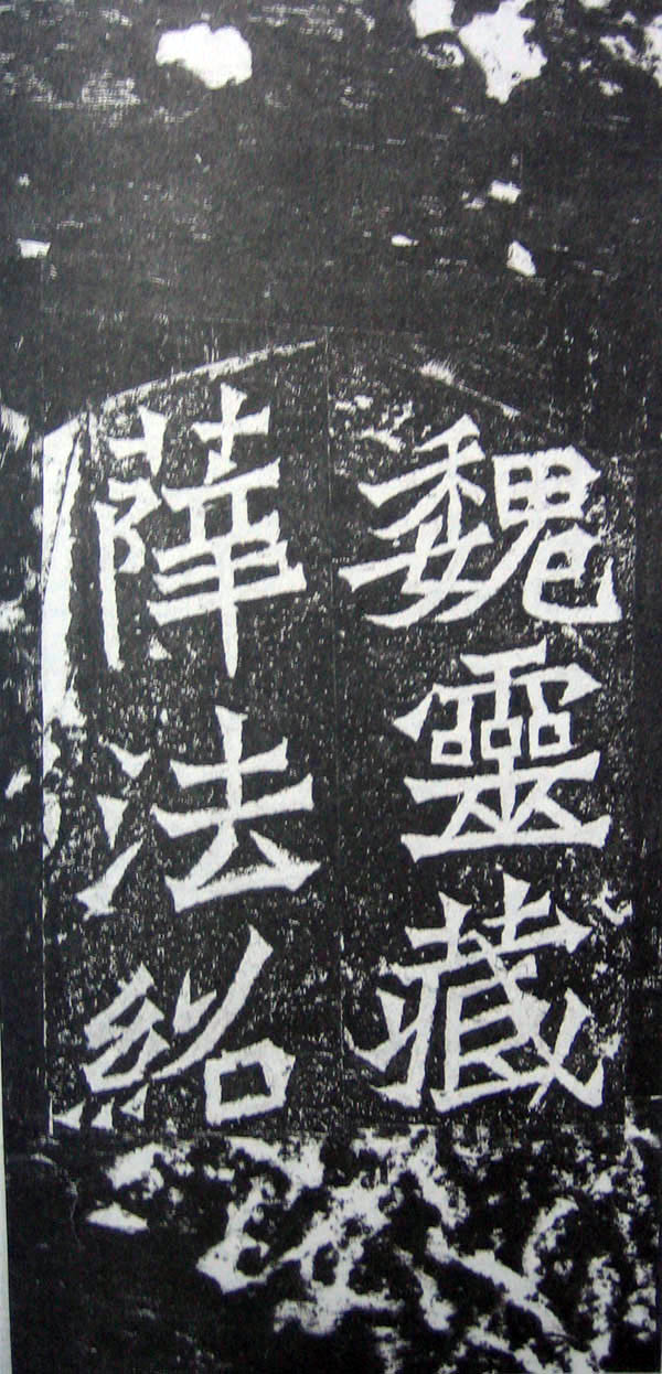 【释文】夫靈跡誕遘。必表光大之跡。 玄功既敷。亦標希世之作。 自雙林改造。大千懷綴映之悲。 慧日潛暉。唅生銜道慕之思。 是以應真。悼三乘之靡憑。 遂騰空以刊像。 爰暨下代。茲容厥作。 鉅鹿魏靈藏。河東薛法紹二人等。 求豪光東照之資。闕兜率翅頭之益。 敢輒磬家財。造石像一區。 凡及眾形。罔不備列。 願乾祚興延。万万朝貫。 願藏等挺三槐於孤峰。秀九蕀於華苑。 芳實再繁。荊條獨茂。合門榮葩。福流奕葉。 命終之後。飛逢千聖。神颺六通。智周三達。 曠世所生。元身眷屬。 捨百鄣則鵬擊龍花。悟無生則鳳昇道樹。 五道群生。咸同斯慶。 陸渾縣功曹魏靈藏。