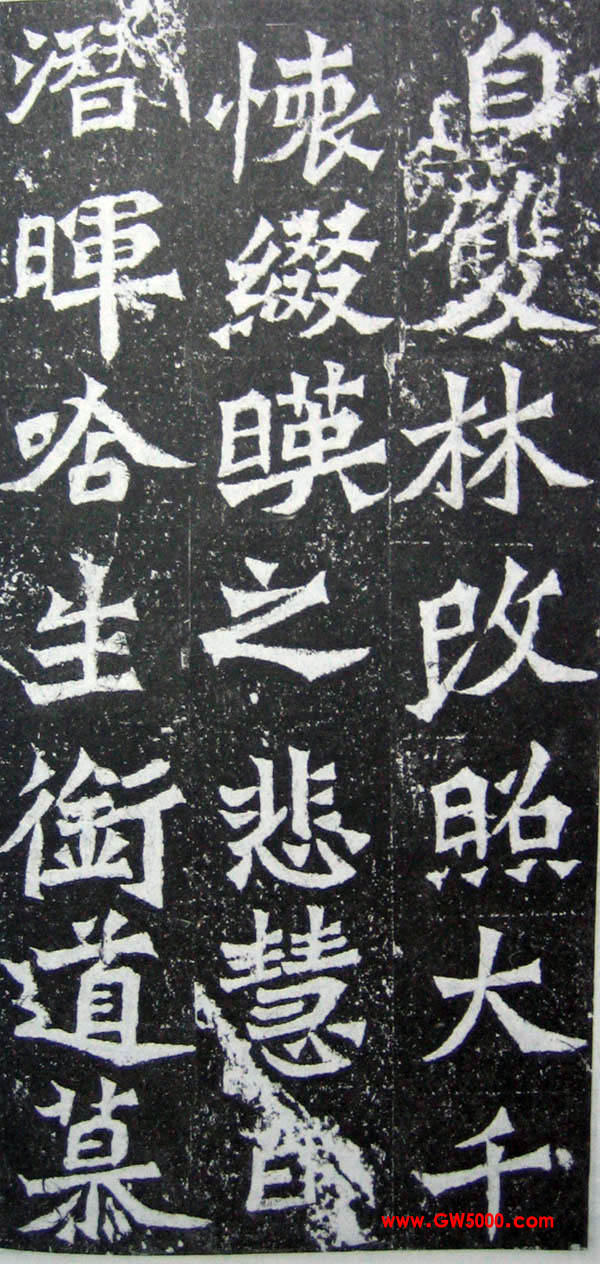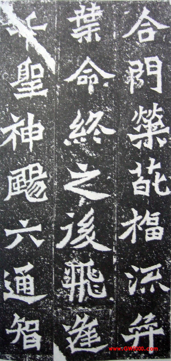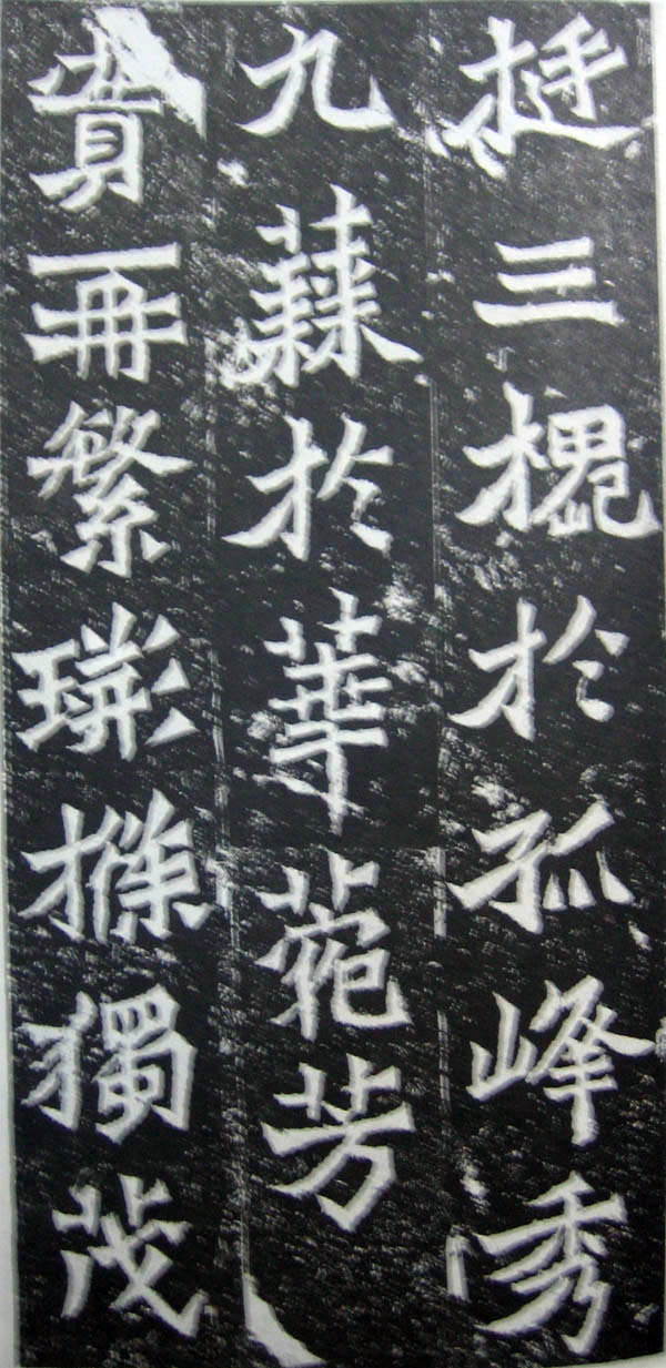 此碑应是方笔露锋之典型代表,因此最显见用笔之妙。起笔都将锋颖露在画外,有的角棱若刀,有的细锋引入,煞有情趣;即使画也挺直有力,折笔显见方棱;收笔处,有时敛毫便止,有时放锋犀利,有时如《宝子》之上扬。笔画或大或小,大者纵矛横戈,如虎奔龙吟,小者轻微一点,如蜻蜓掠水,皆能顺势合情.绝无率意轻发。结体或取横势,或取纵势,皆极意显示雄踞盘关之威仪,怀隐瑰玉之神采。整篇看来,严整肃穆,端庄隽洁。