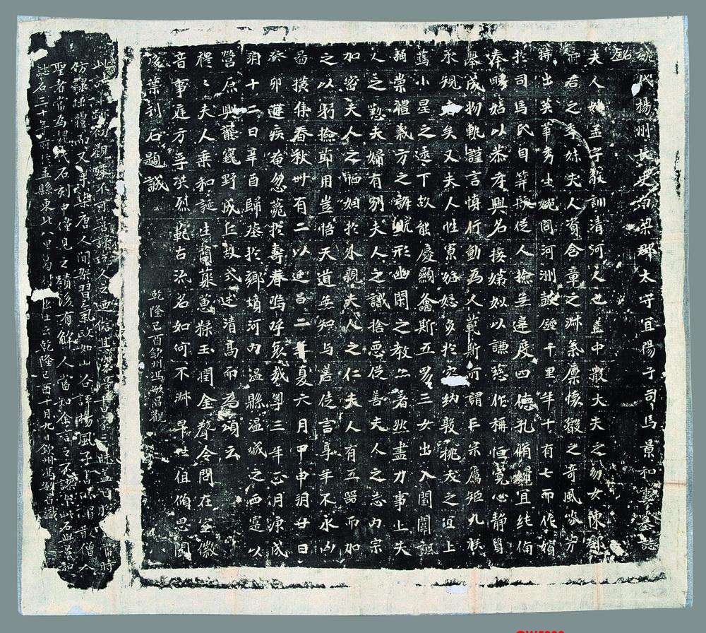 释文: 魏代杨州长史南梁郡太守宜阳子司马景和妻墓志”铭”夫人姓孟,字敬训,清河人也。盖中散大夫之幼女,陈郡”府君之季妹。夫人资含章之淑气,禀怀叡之奇风,芬芳”特出,英华秀生,婉问河洲,鼓钟千里。年十有七而作嫔于司马氏。自笄发从人,捡无违度,四德孔修,妇宜纯备。”奉舅姑以恭孝与名,接娣姒以谦慈作称。恒宽心静质,”举成物轨,谨言慎行,动为人范。斯所谓三宗厉矩,九族”承规者矣。又夫人性寡妒(女忌),多于容纳,敦桃夭之宜上,”笃小星之逮下。故能庆显螽斯,五男三女,出入闺闱。讽”诵崇礼,义方之诲既形,幽闲之教亦着。然尽力事上,夫”人之勤;夫妇有别,夫人之识;舍恶从善,夫人之志;内宗” 加密,夫人之恤;姻于外亲,夫人之仁。夫人有五器,而加”之以躬检节用。岂悟天道无知,与善徒言,享年不永,凶”图横集。春秋卌有二,以延昌二年夏六月甲申朔廿日”癸卯遘疾奄忽,薨于寿春。呜呼哀哉。粤三年正月庚戌”朔十二日辛酉归葬于乡坟河内温县温城之西。实以营原兴垄,竁野成丘,故式述清高,而为颂云:”穆穆夫人,乘和诞生,兰聚蕙糅,玉润金声。令问在室,徽”音事庭,方孚洪烈,范古流名。如何不淑,早世徂倾,思闻后叶,刊石题诚。