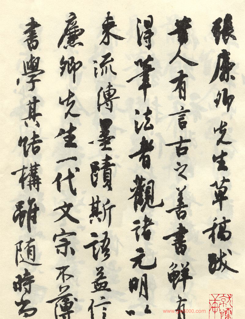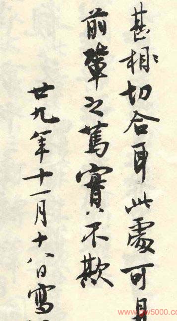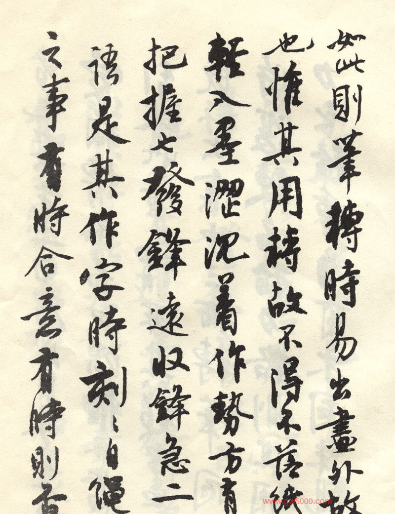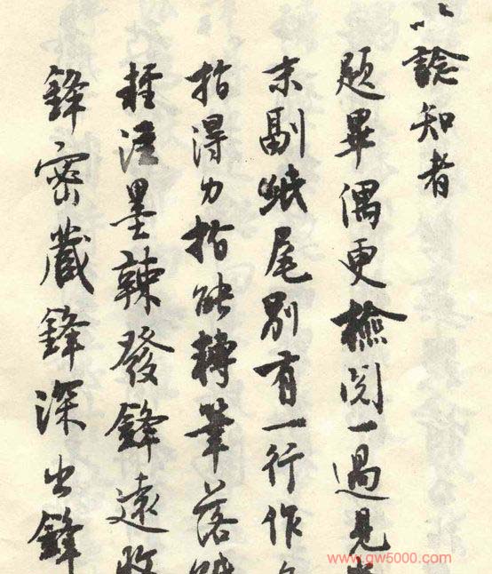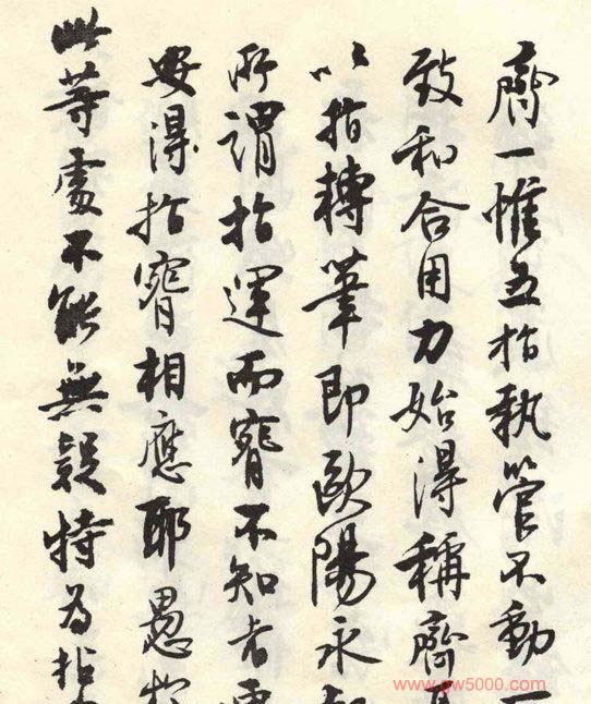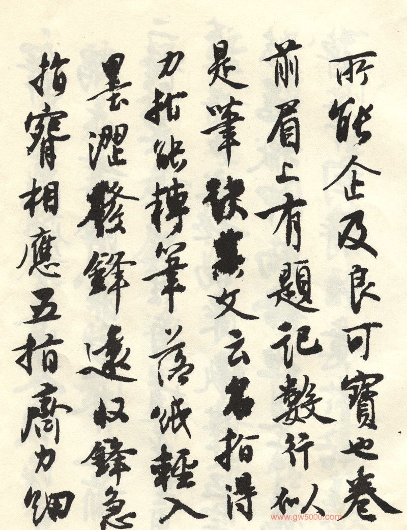 沈尹默于1940年读到张裕钊(廉卿)一篇草稿后,针对该稿所记执笔法而作《执笔五字法》,并连同所撰《张廉卿先生草稿跋》写成手卷。该跋文书法极精妙。