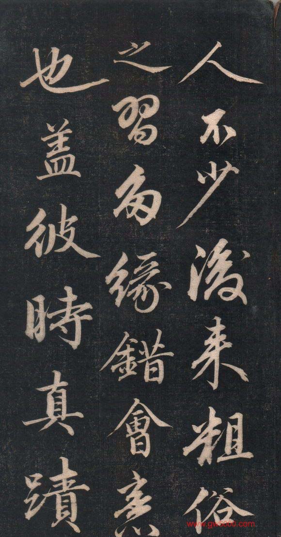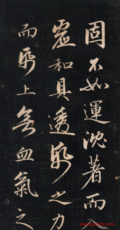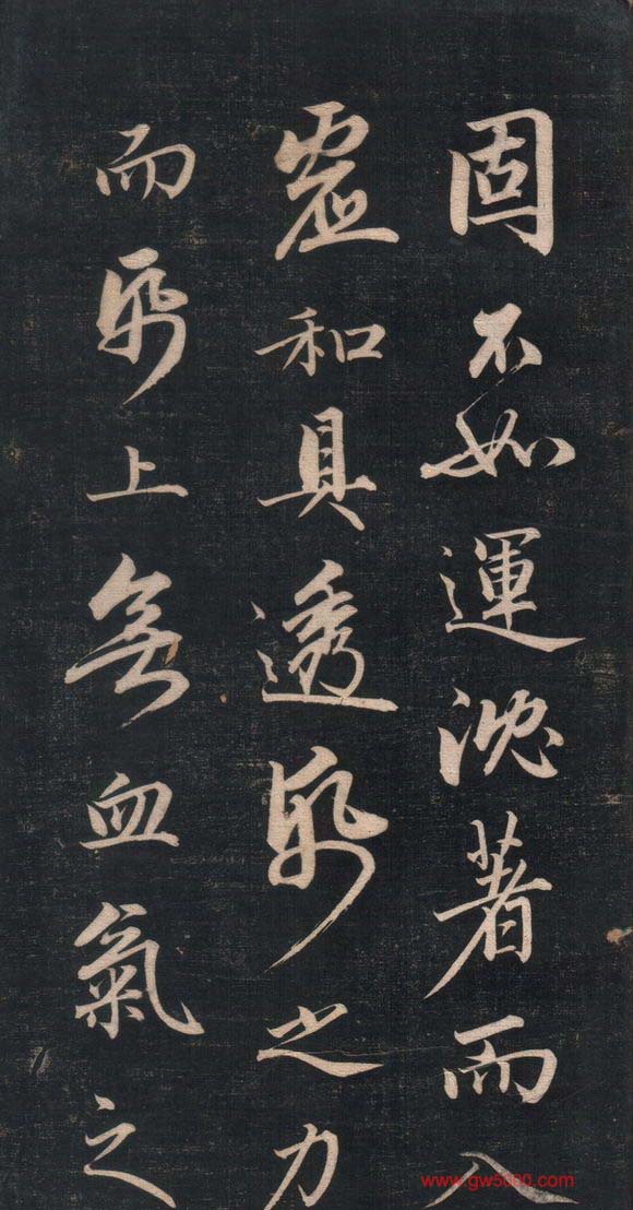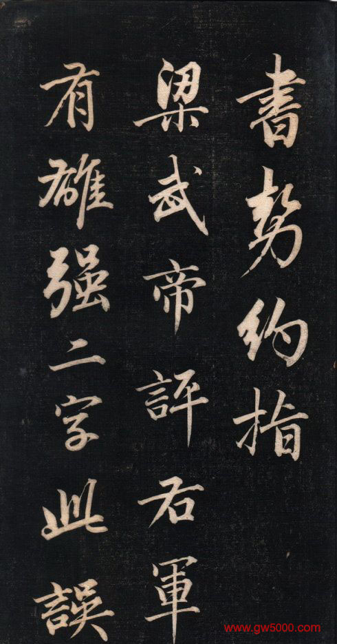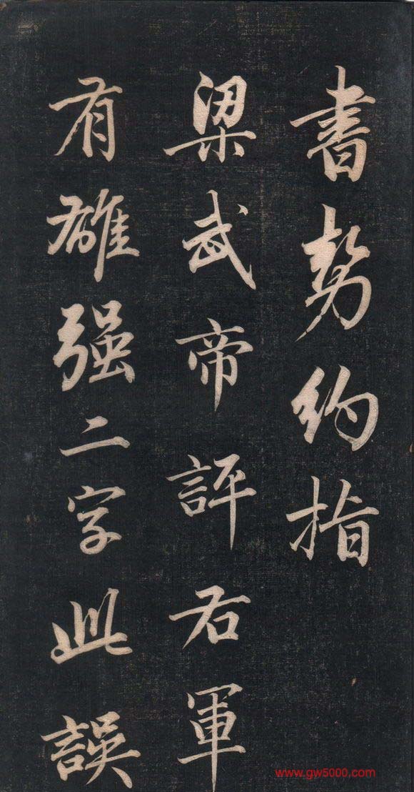 梁武帝评右军有雄强二字,此误人不少,后来粗俗之习多缘错会意也。盖彼时真蹟犹常得见,今则从木石追取影響,雄强未成,獷悍先染,固不如運沉着而入虚和,具透纸之力而纸上无血气之勇,其品自超诣矣。
