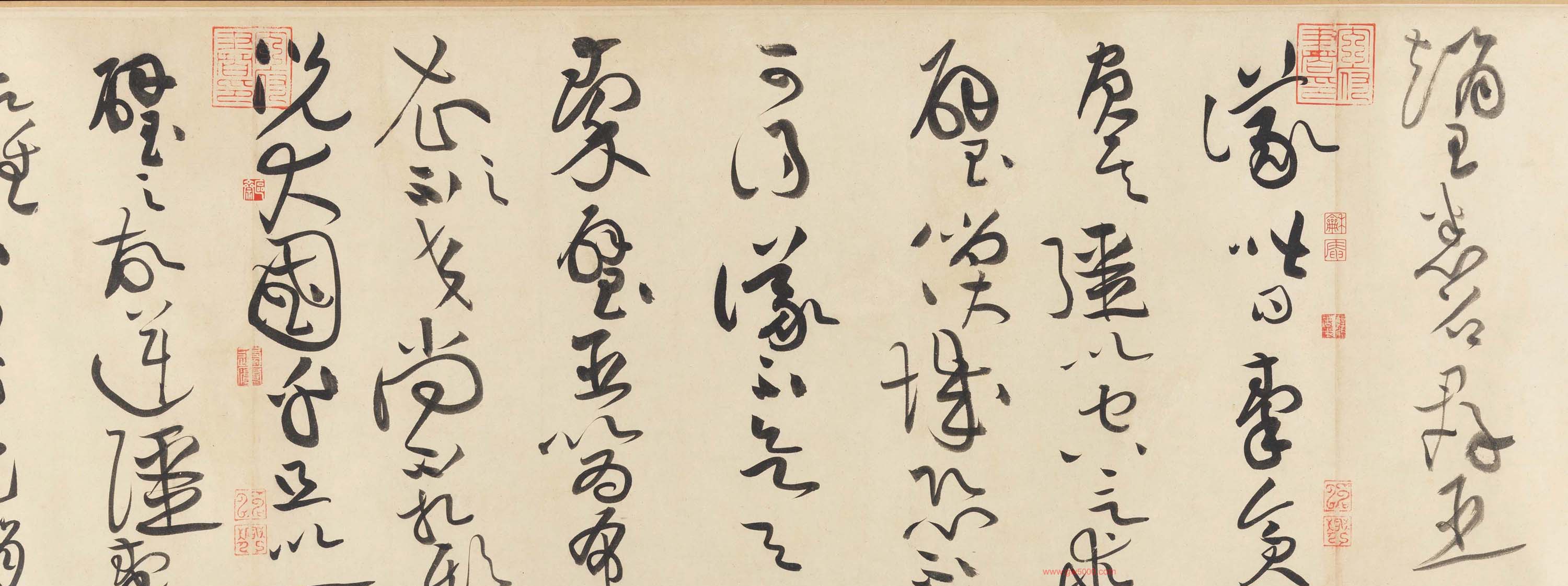 黄庭坚书法《廉颇蔺相如传》高清晰大图 白纸本 纵32.5厘米,横1822厘米。美国纽约大都会博物馆 约翰.克劳弗德藏