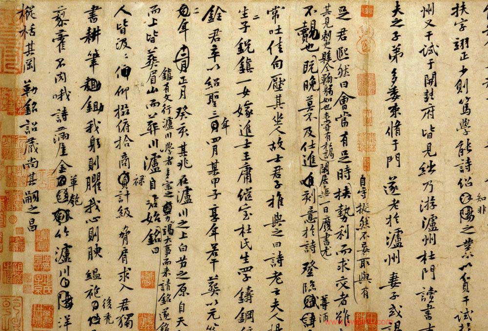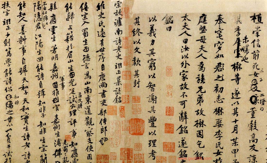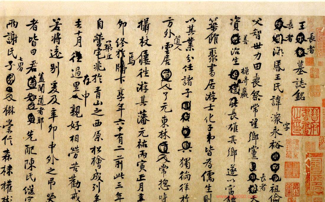 此卷为《王长者墓志铭稿》和《宋卢南诗老史翊正墓志铭稿》合成。分别书约于黄庭坚四十至四十五岁、五十五岁前后至六十岁之间。