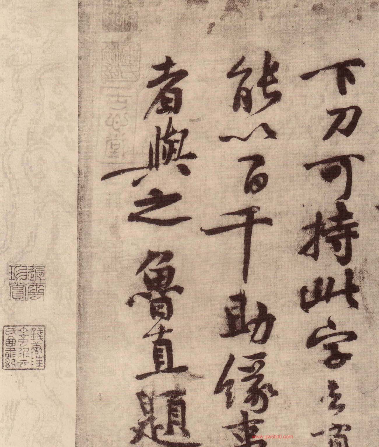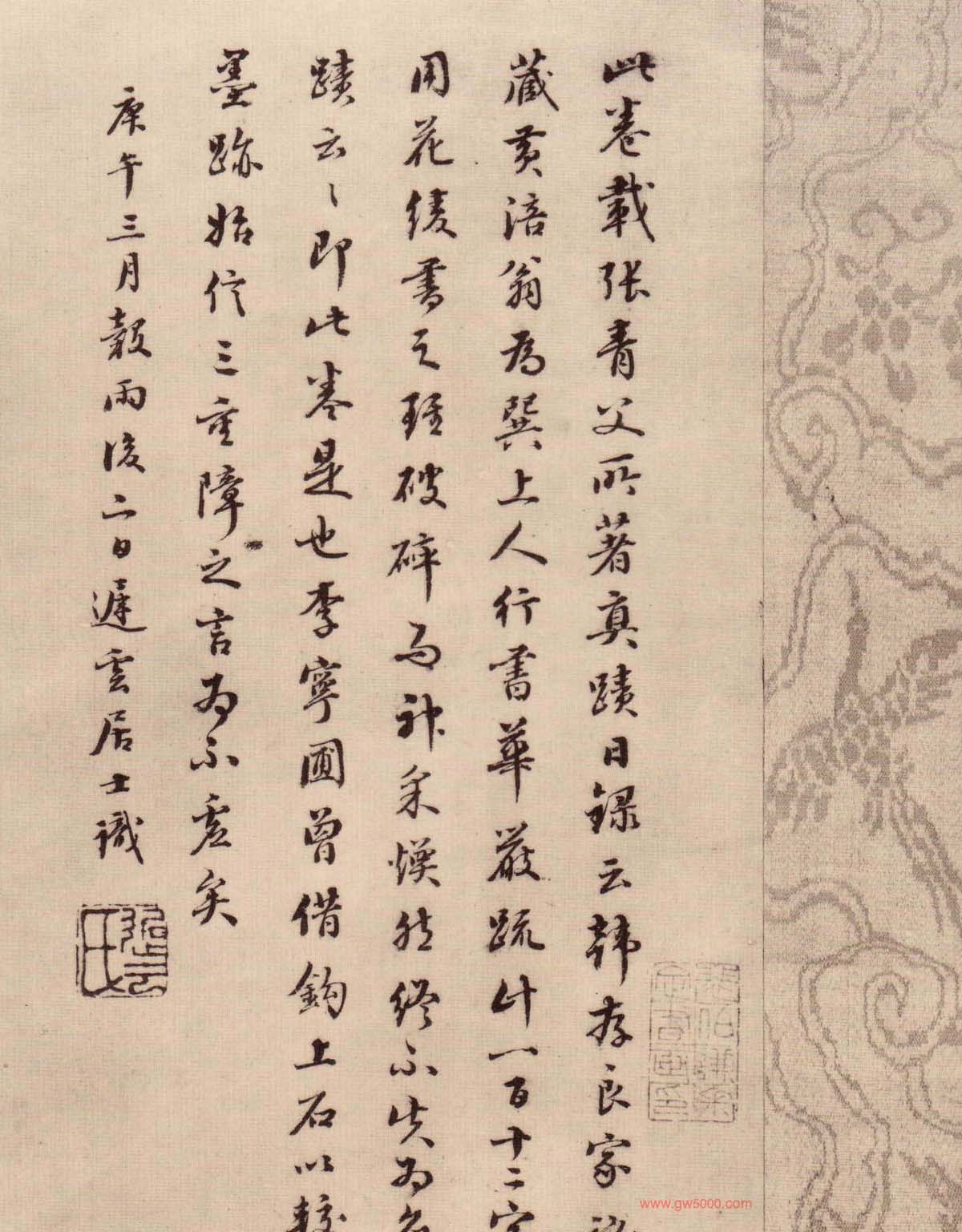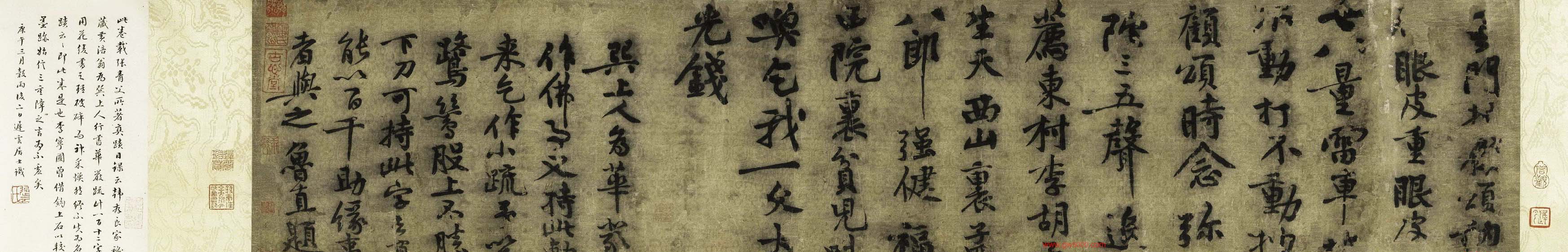黄庭坚书法真迹《华严经疏卷》,花绫 25.1×115厘米,上海博物馆藏。