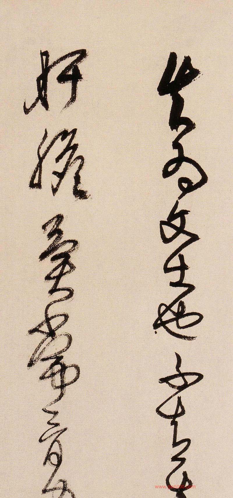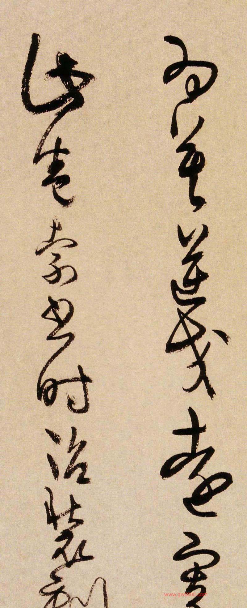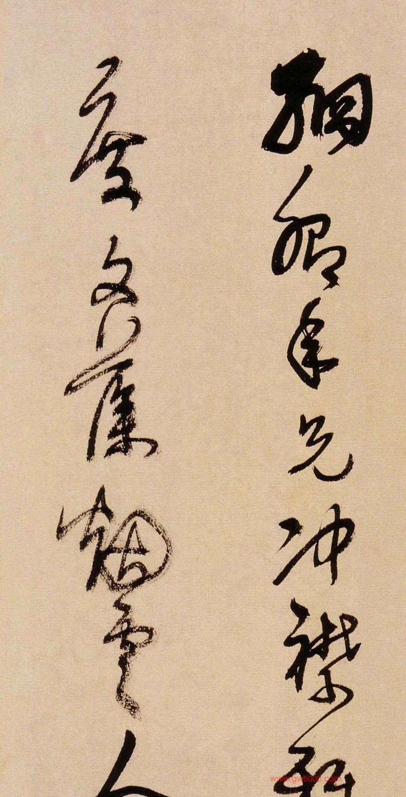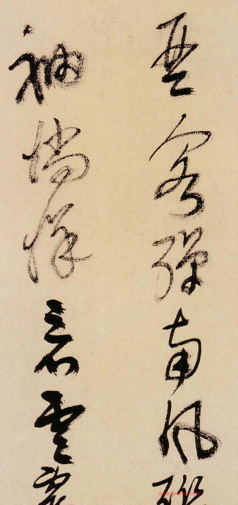 本册草书从其落款上看是“甲子暮春”是天启四年(1624)年所书,当时王铎三十三岁。是年正月,王铎授翰林院检讨,春天,其返故里,舅父陈具茨四月卒,时守在榻旁。直至冬天,自孟津出游陆浑山,继沿伊水北上,过龙门,登香山。可见,此册是其在家乡时所作。我们很难想象三十三岁时的王铎能写出如此老辣苍茫的作品,与其晚年作品几无二致,我以为有两点是值得注意的,一是其落款,“铎”字与晚年不同。另外,晚年作品书写时用大王内擫法,更为注重左右的穿插变化,呈S形轨迹,而此册则基本是以直线而下的。王铎此册草书是承袭小王外拓连绵草的传统,气势绵延跌宕,笔致苍茫浑厚,在书写过程中,实连多于意连,故有大珠小珠落玉盘的趣味,每一页中有较为浓重的字与渴燥枯笔的字互为映照,从视觉效果上显得极为灿烂夺目。从涨墨、浓墨、枯墨等一系列墨色的变化中我们可以清晰看出王铎的突破点所在。其次是王铎对字的造型把握极有天分,他善于以险造势,在不稳中求得其平衡,犹如体操运动员走平衡木一般。正是这种左右摇曳生姿的险绝正如文如看山不喜平,让人在不断享受新奇新鲜所带来的快感和美感:让我们的心理节律与书写的节奏融为一体,感受着笔墨的欢快跳动。再次是王铎采用间距密集、行距宽疏的方法,由此形成对比,一密一疏的方法也在某种程度上强化了它的形式效果。当然在观赏中最为让人心旌摇荡的还是王铎书法线条的遒劲有力的质感,给人以入木三分的效果。梁章钜在本册跋中说:“孟津书法雄伟,足以推倒流辈,而间有习气未除。此卷则神动天随,几于化矣。吾乡张二水有其雄伟而飞舞逊此一筹,要皆为艺林绝技也。”他将此册的特点归结于雄伟飞舞,亦可谓一家之言。