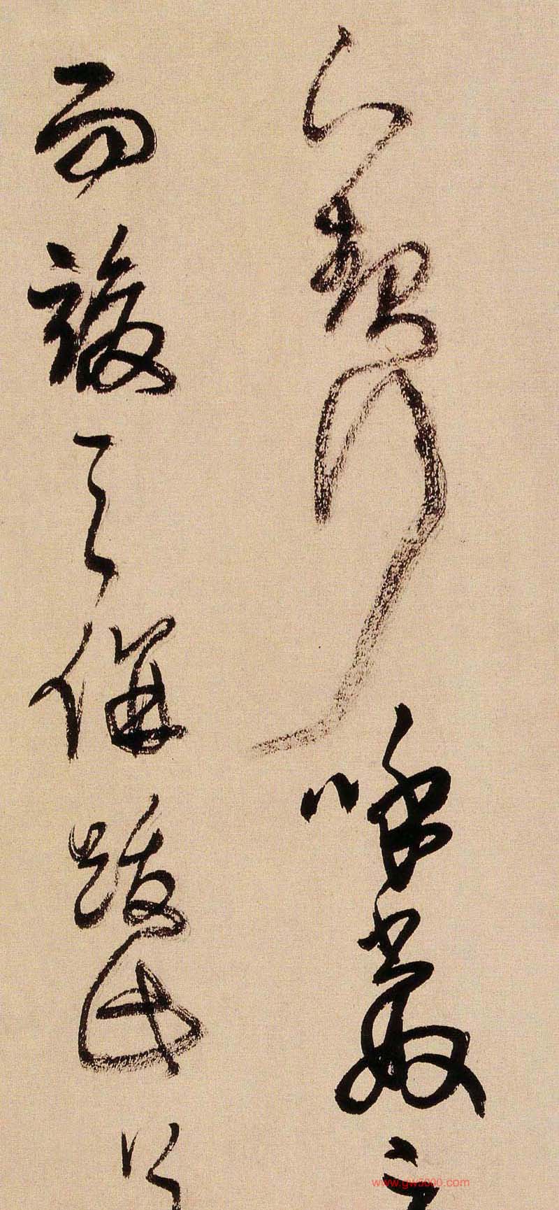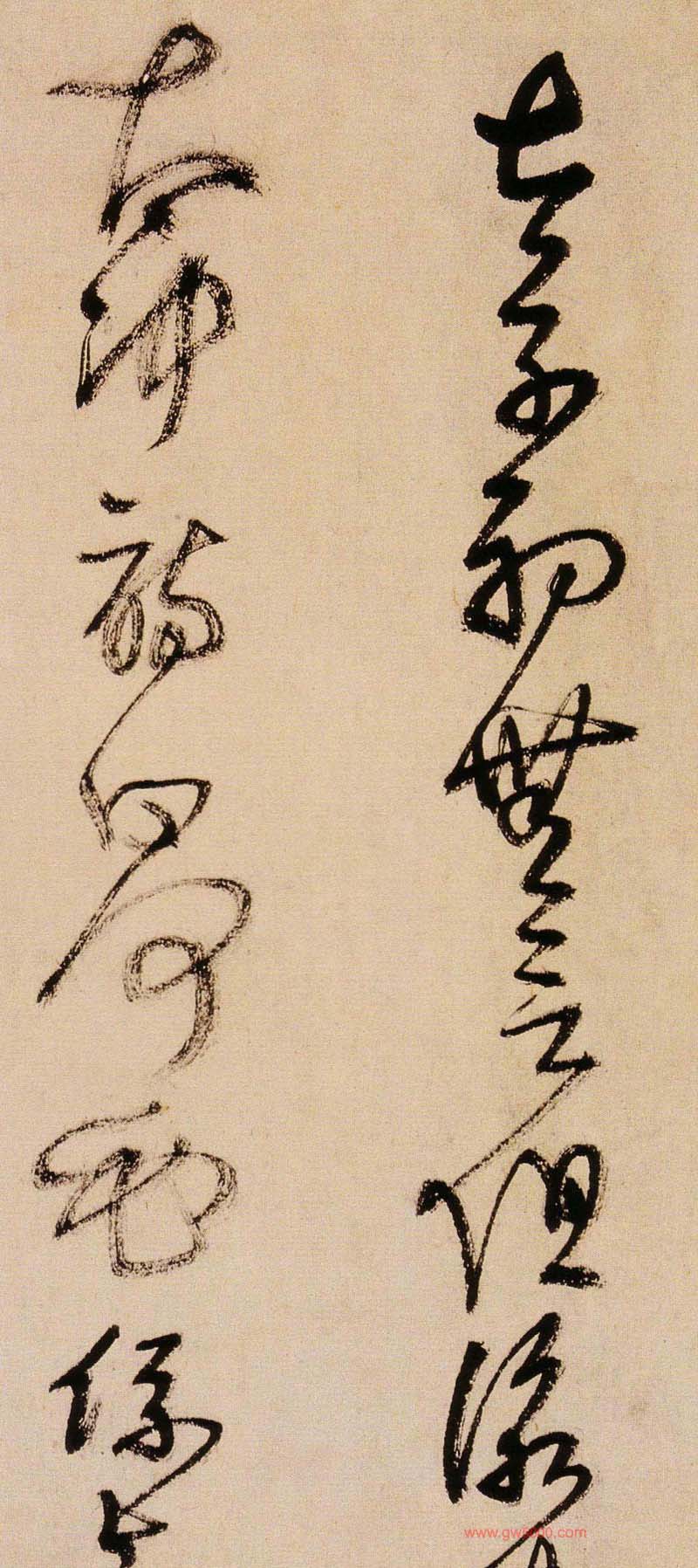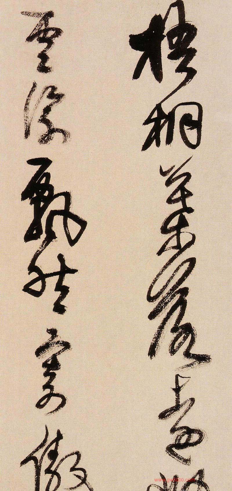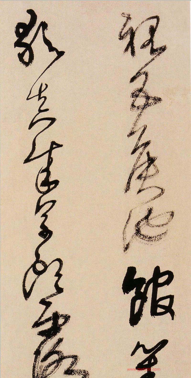 本册草书从其落款上看是“甲子暮春”是天启四年(1624)年所书,当时王铎三十三岁。是年正月,王铎授翰林院检讨,春天,其返故里,舅父陈具茨四月卒,时守在榻旁。直至冬天,自孟津出游陆浑山,继沿伊水北上,过龙门,登香山。可见,此册是其在家乡时所作。我们很难想象三十三岁时的王铎能写出如此老辣苍茫的作品,与其晚年作品几无二致,我以为有两点是值得注意的,一是其落款,“铎”字与晚年不同。另外,晚年作品书写时用大王内擫法,更为注重左右的穿插变化,呈S形轨迹,而此册则基本是以直线而下的。王铎此册草书是承袭小王外拓连绵草的传统,气势绵延跌宕,笔致苍茫浑厚,在书写过程中,实连多于意连,故有大珠小珠落玉盘的趣味,每一页中有较为浓重的字与渴燥枯笔的字互为映照,从视觉效果上显得极为灿烂夺目。从涨墨、浓墨、枯墨等一系列墨色的变化中我们可以清晰看出王铎的突破点所在。其次是王铎对字的造型把握极有天分,他善于以险造势,在不稳中求得其平衡,犹如体操运动员走平衡木一般。正是这种左右摇曳生姿的险绝正如文如看山不喜平,让人在不断享受新奇新鲜所带来的快感和美感:让我们的心理节律与书写的节奏融为一体,感受着笔墨的欢快跳动。再次是王铎采用间距密集、行距宽疏的方法,由此形成对比,一密一疏的方法也在某种程度上强化了它的形式效果。当然在观赏中最为让人心旌摇荡的还是王铎书法线条的遒劲有力的质感,给人以入木三分的效果。梁章钜在本册跋中说:“孟津书法雄伟,足以推倒流辈,而间有习气未除。此卷则神动天随,几于化矣。吾乡张二水有其雄伟而飞舞逊此一筹,要皆为艺林绝技也。”他将此册的特点归结于雄伟飞舞,亦可谓一家之言。