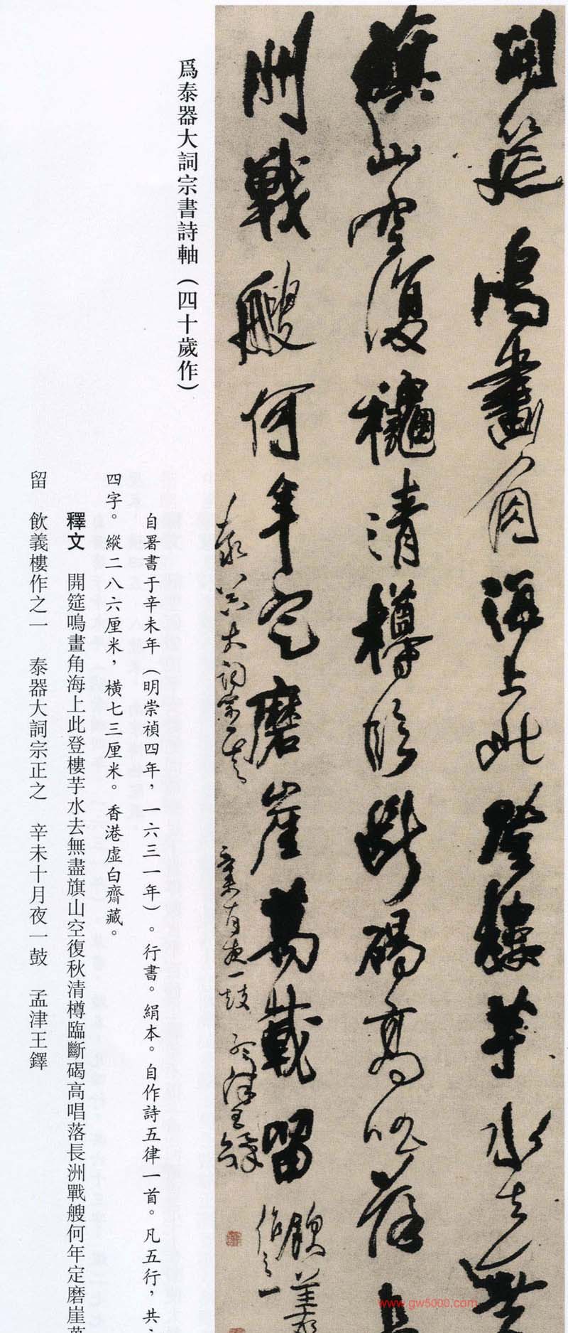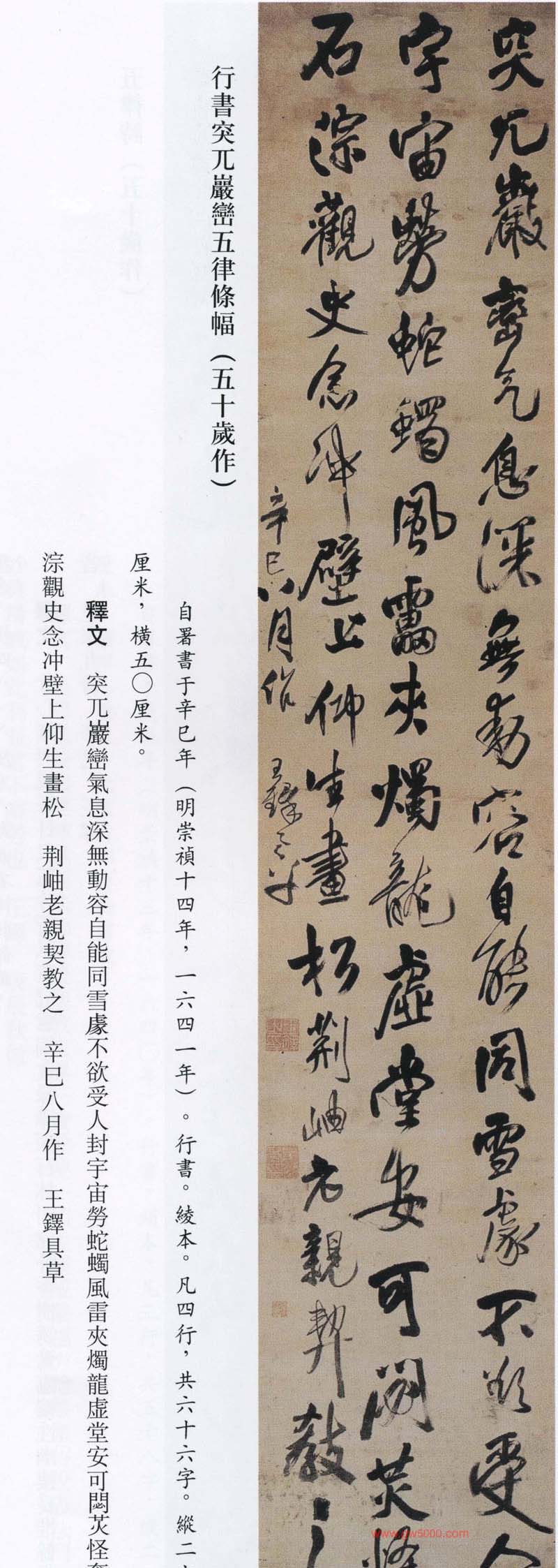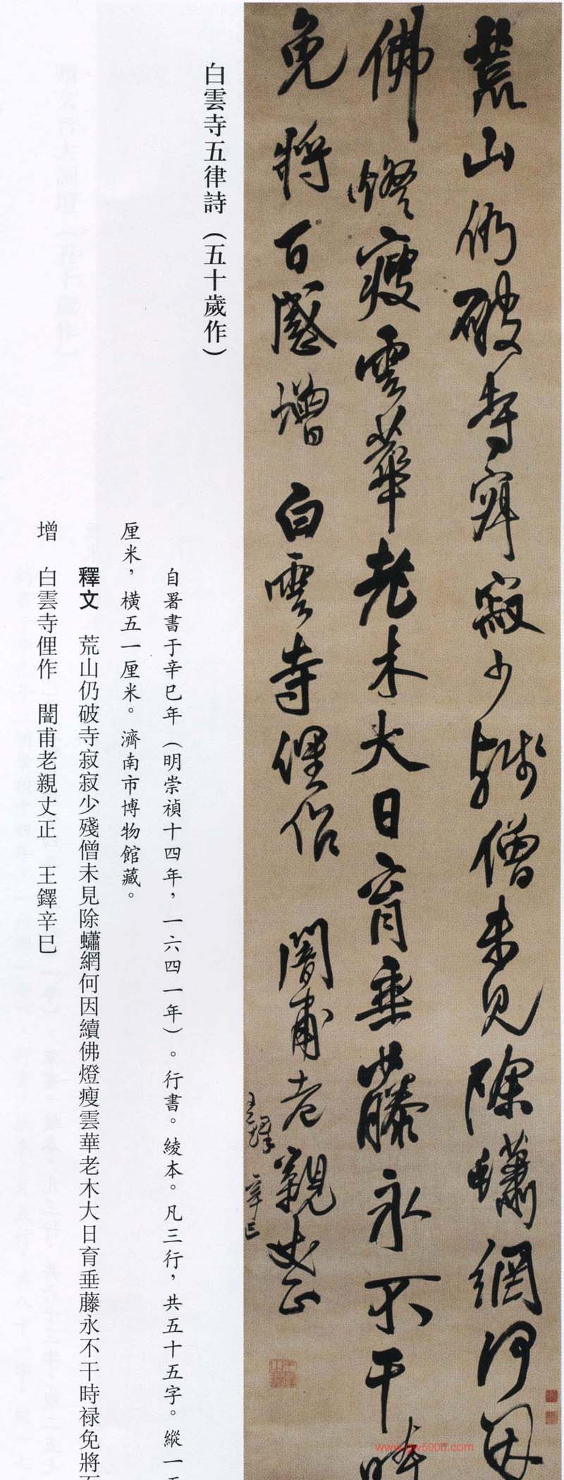 王铎书法艺术欣赏《王鐸書法精選》刘燦章编;河南美术出版社。