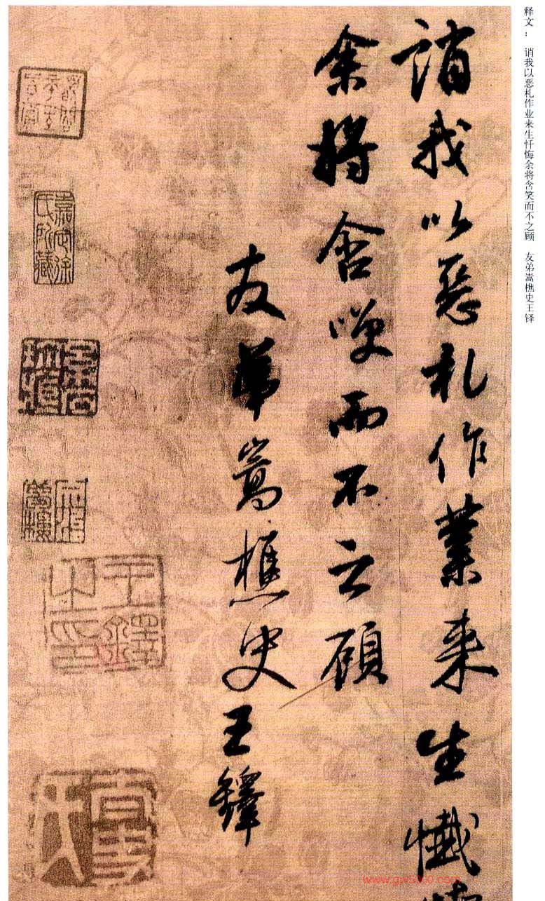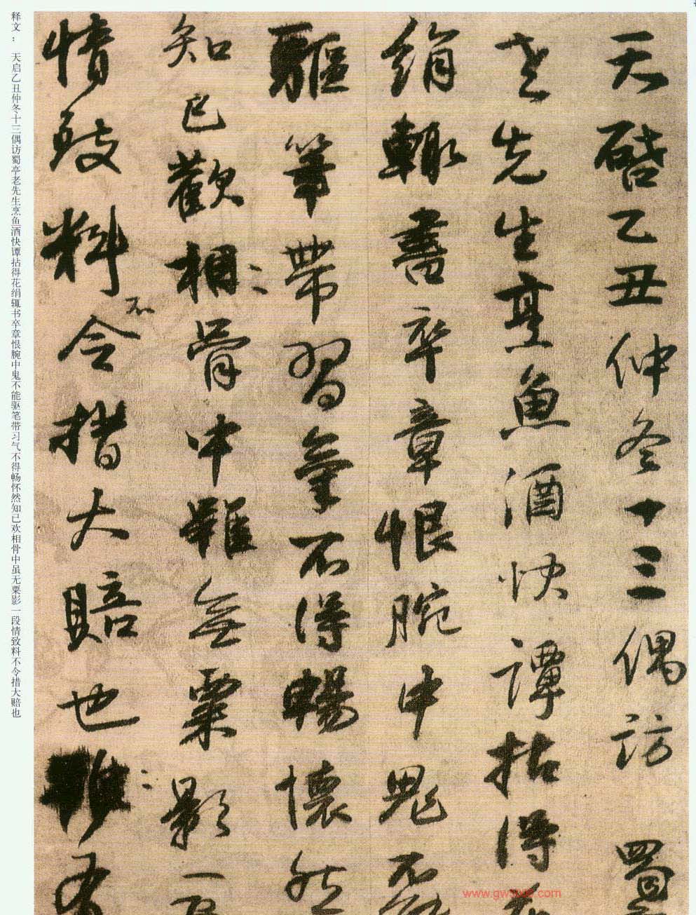 明天启五年乙丑(1625年)十一月十二日,王铎时年34岁,于“蜀亭老先生”斋中,临《兰亭序并律诗帖》。