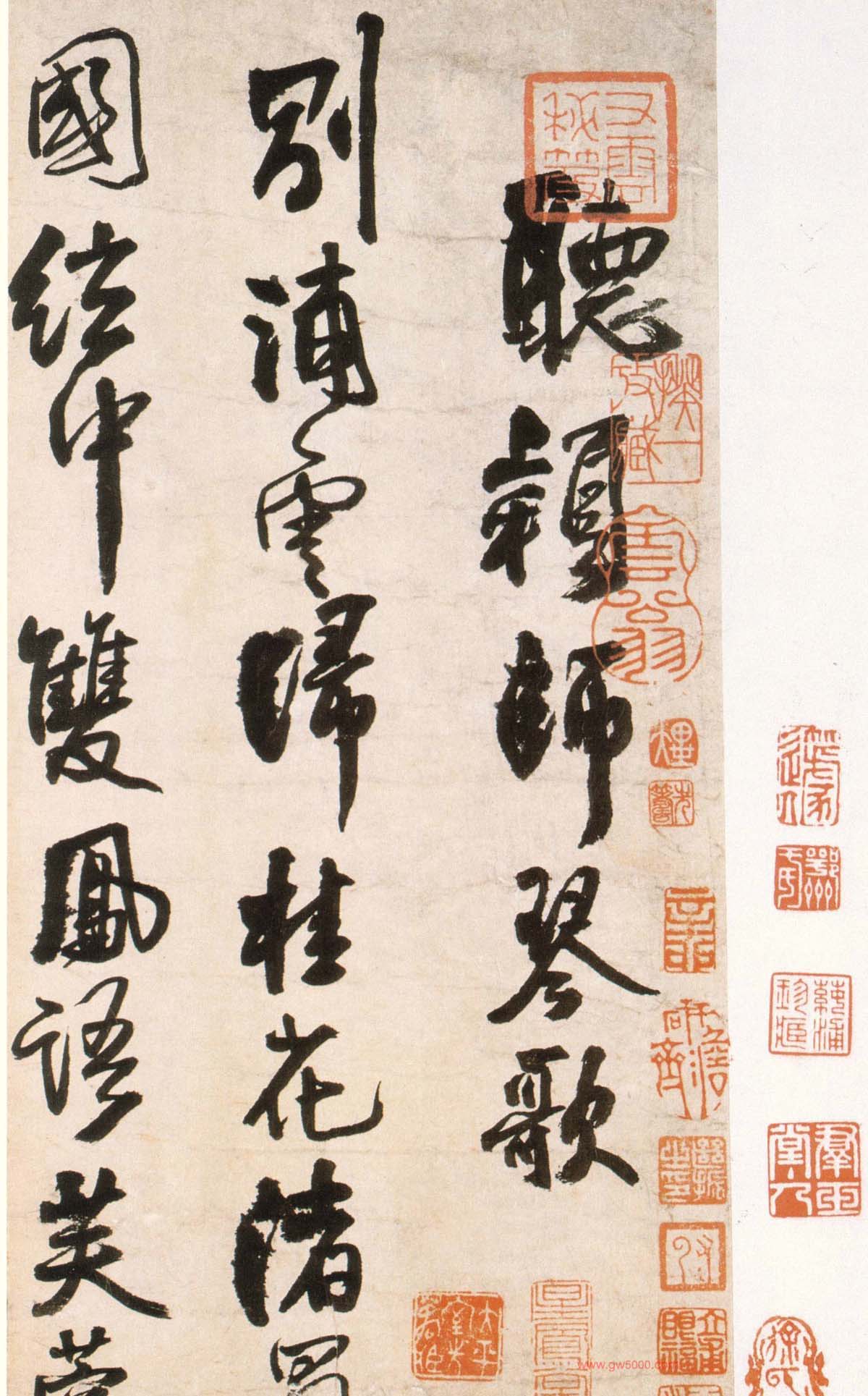 王铎行书欣赏《听颖师琴歌》,放大书法图片5张。