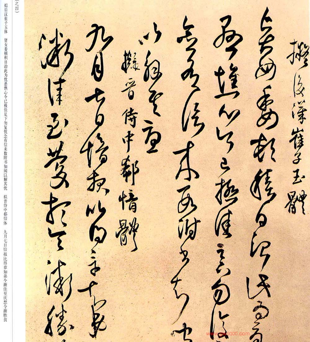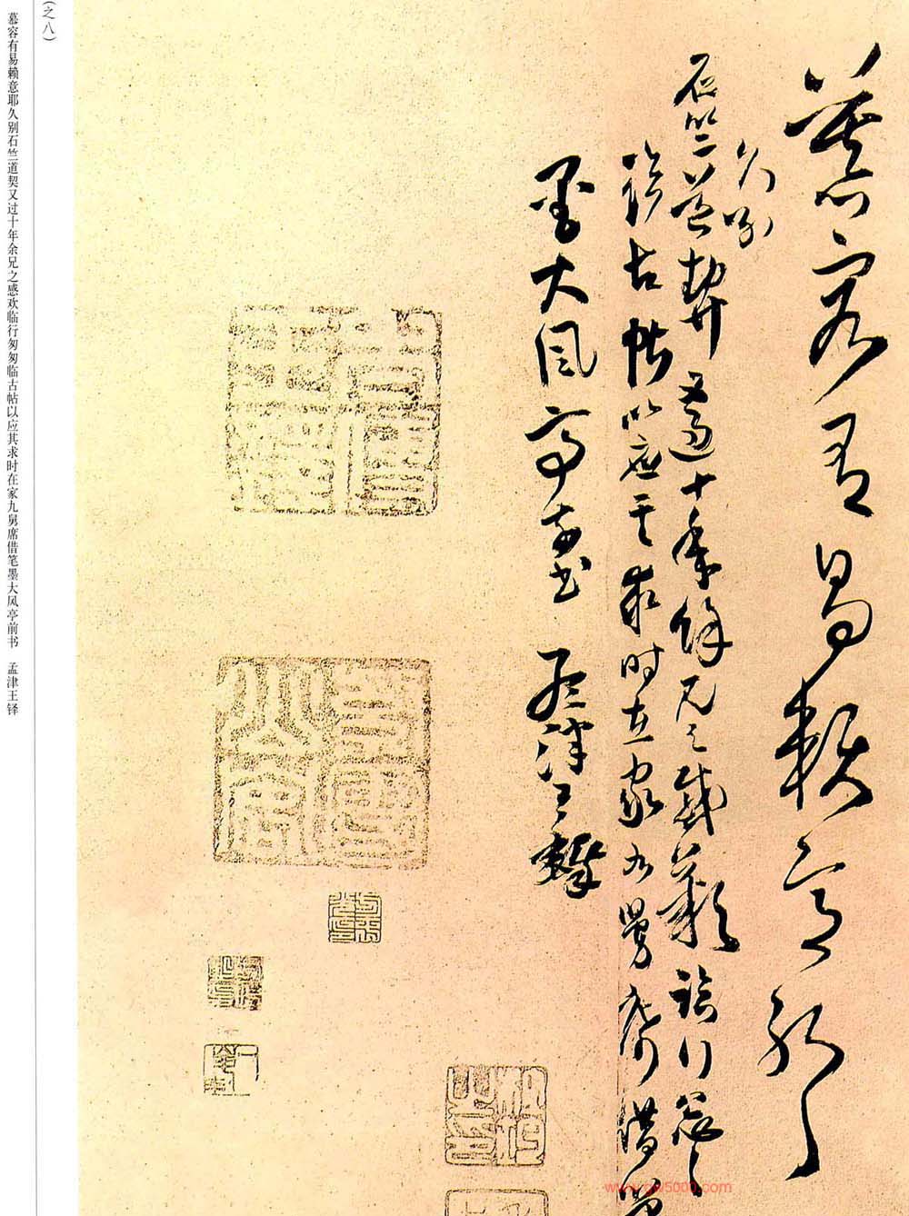 王铎草书欣赏拟汉张芝体书法册页,附释文图片八张。
