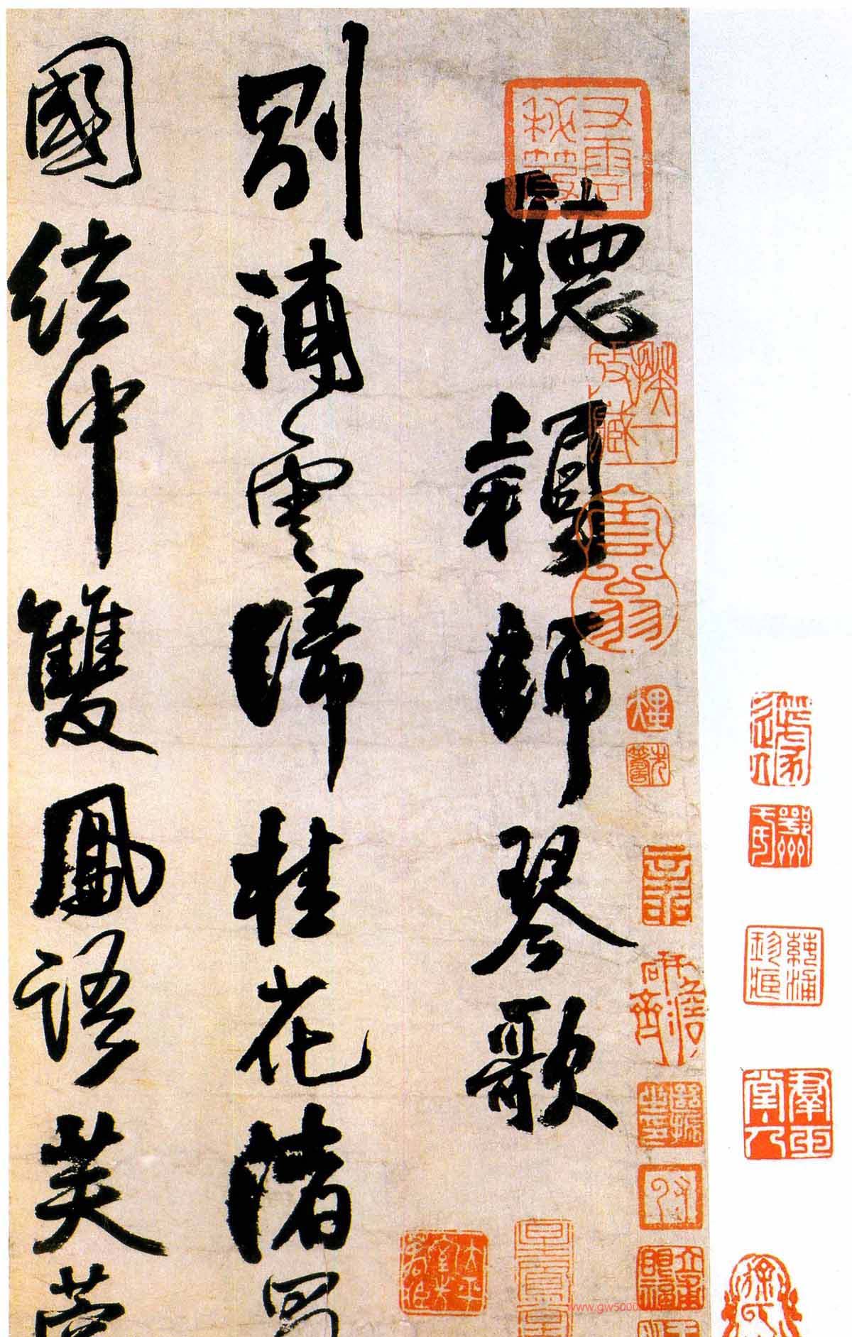王铎行书欣赏《书法册页李贺诗四首》,自署书于清顺治四年,即1647年。书李贺诗《听颖师琴歌》、《神仙曲》等4首,凡40行,共328字。台北王壮为氏藏。纸本书法册页12页。