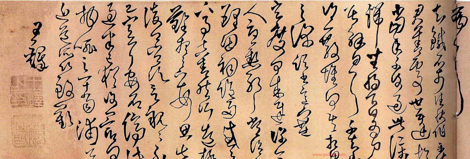 王铎草书手卷欣赏《临王献之帖》绫本,27.7*236.5厘米,四川省博物馆藏。书法长卷图片4张。
