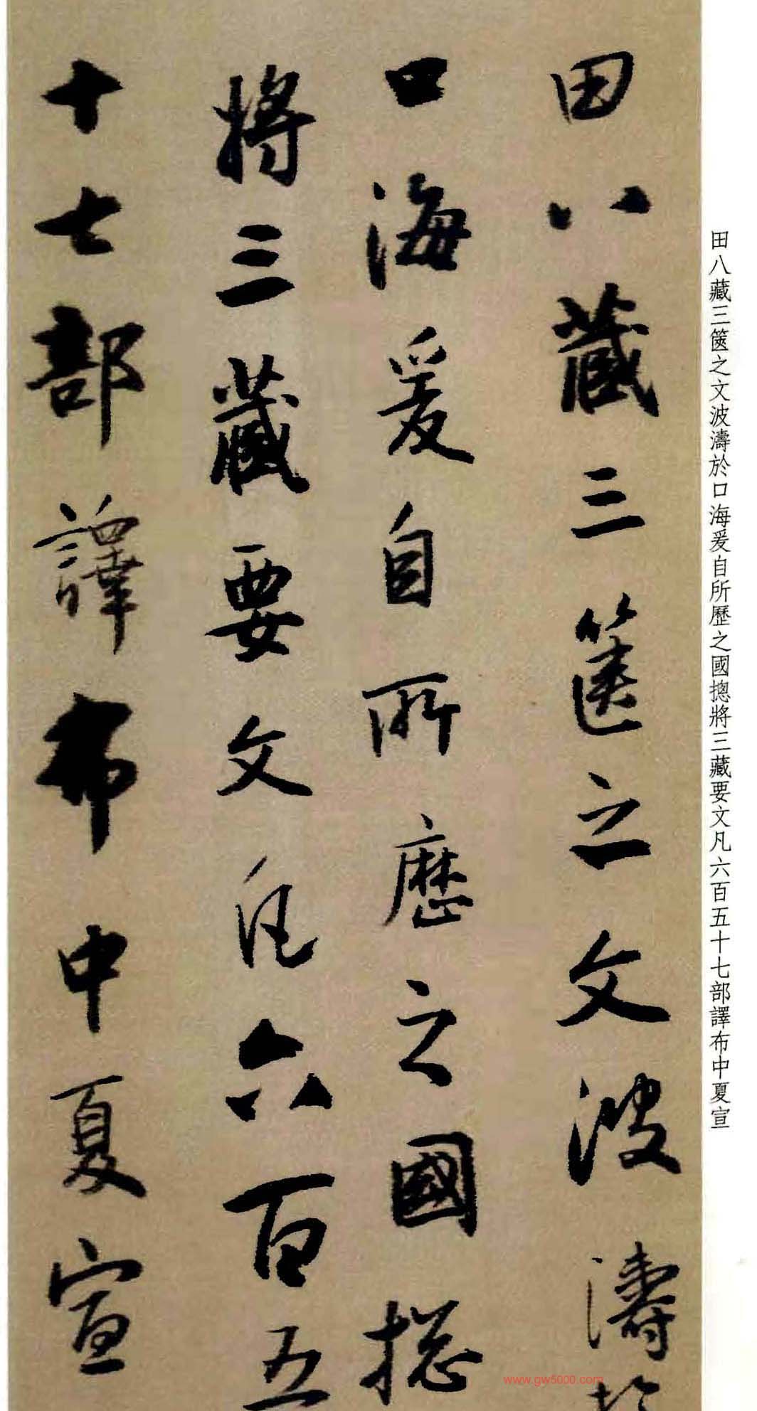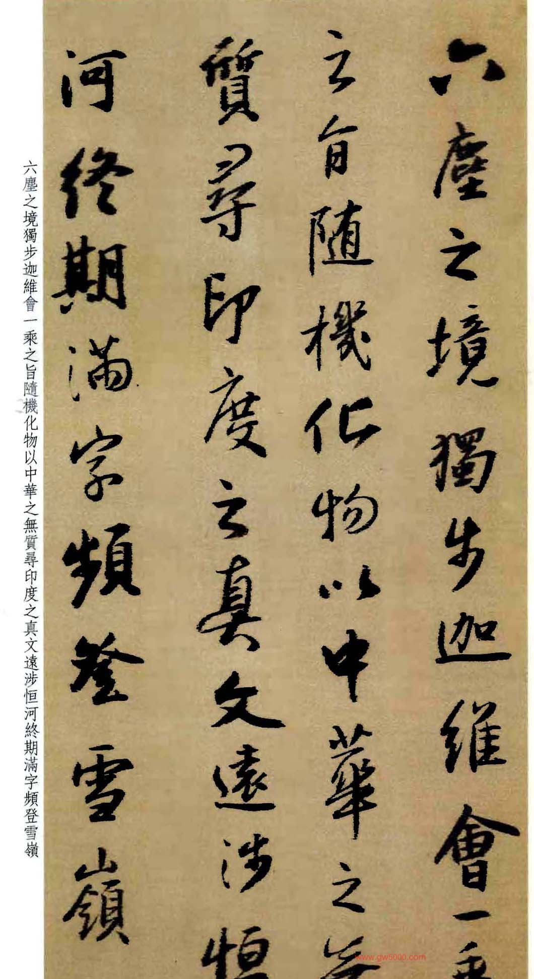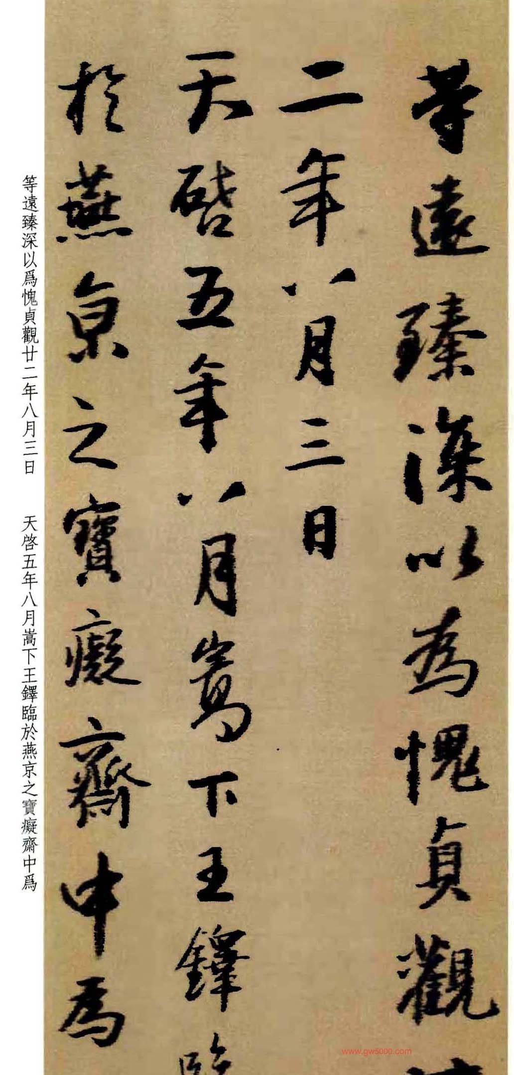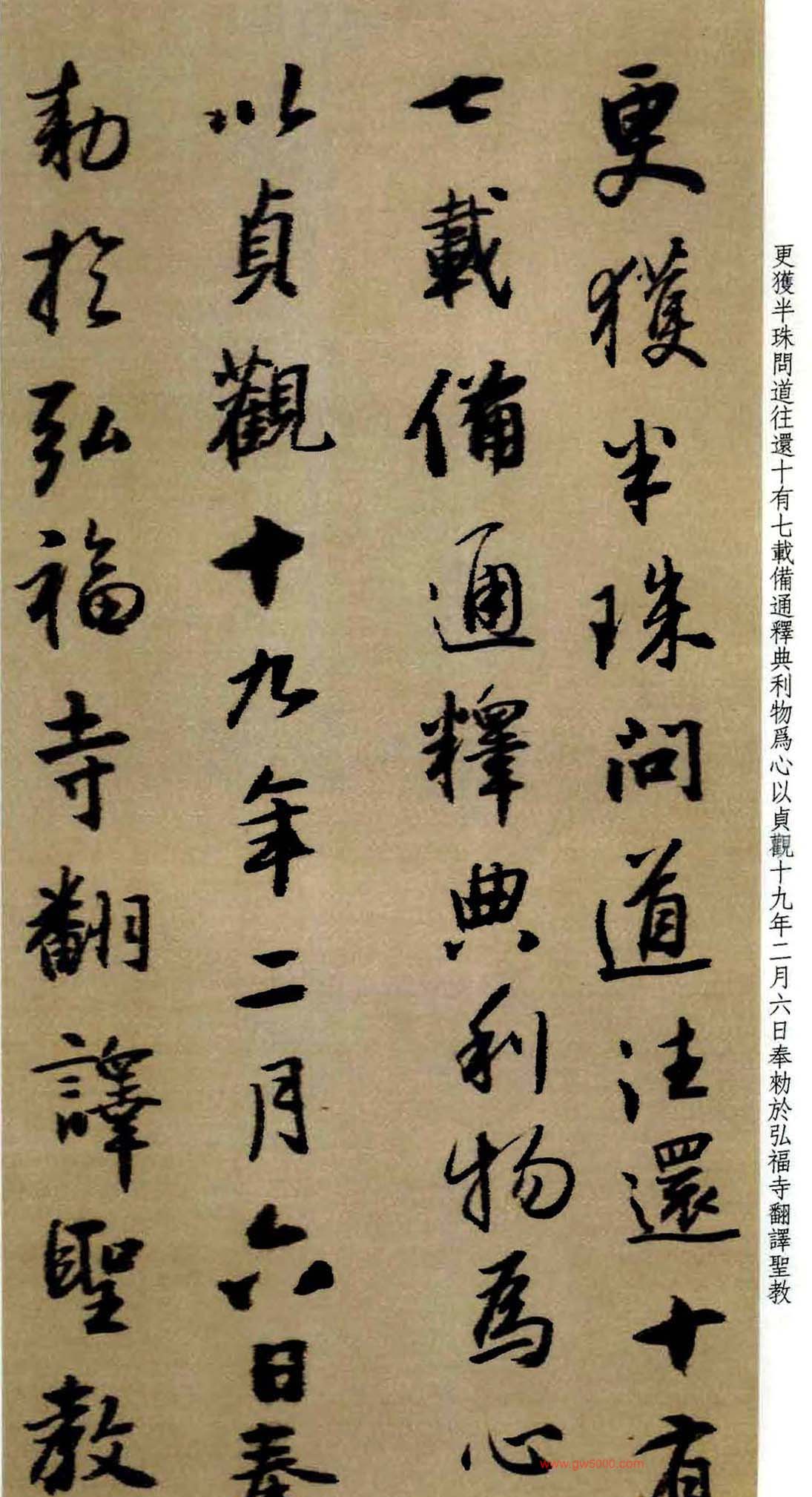 王铎13岁始临习王羲之《圣教序》。三年后,字字逼肖。《为景圭先生临圣教序册》书于1625年明天启五年乙丑王铎34岁。