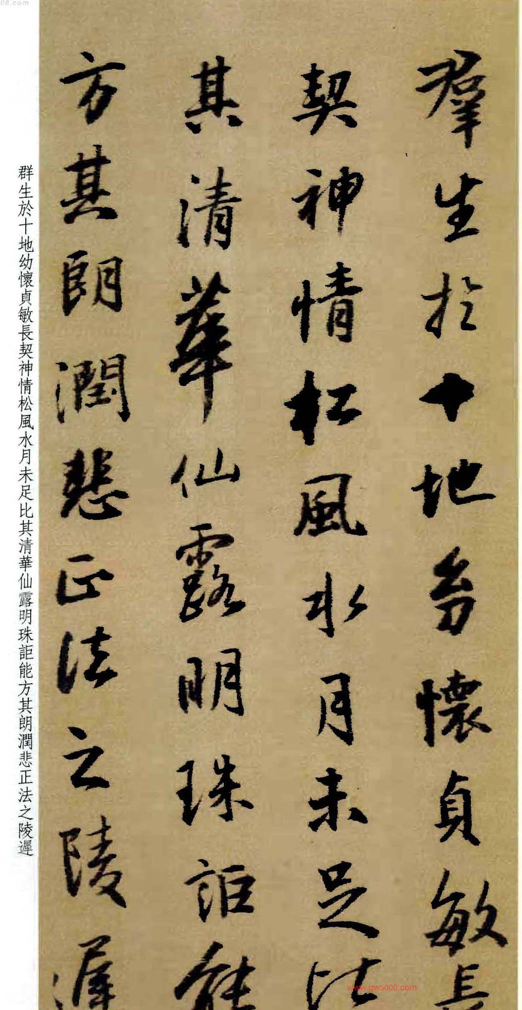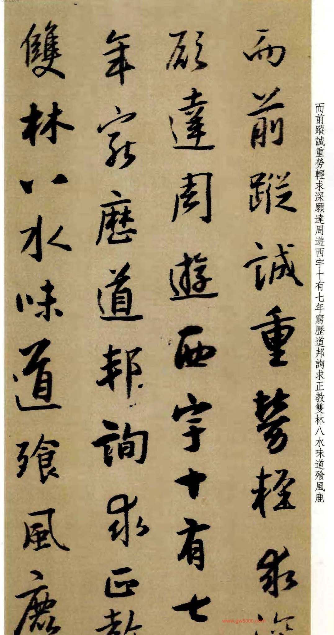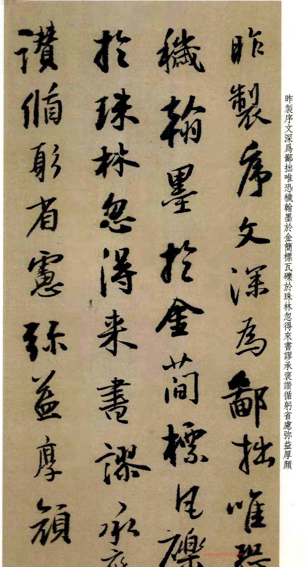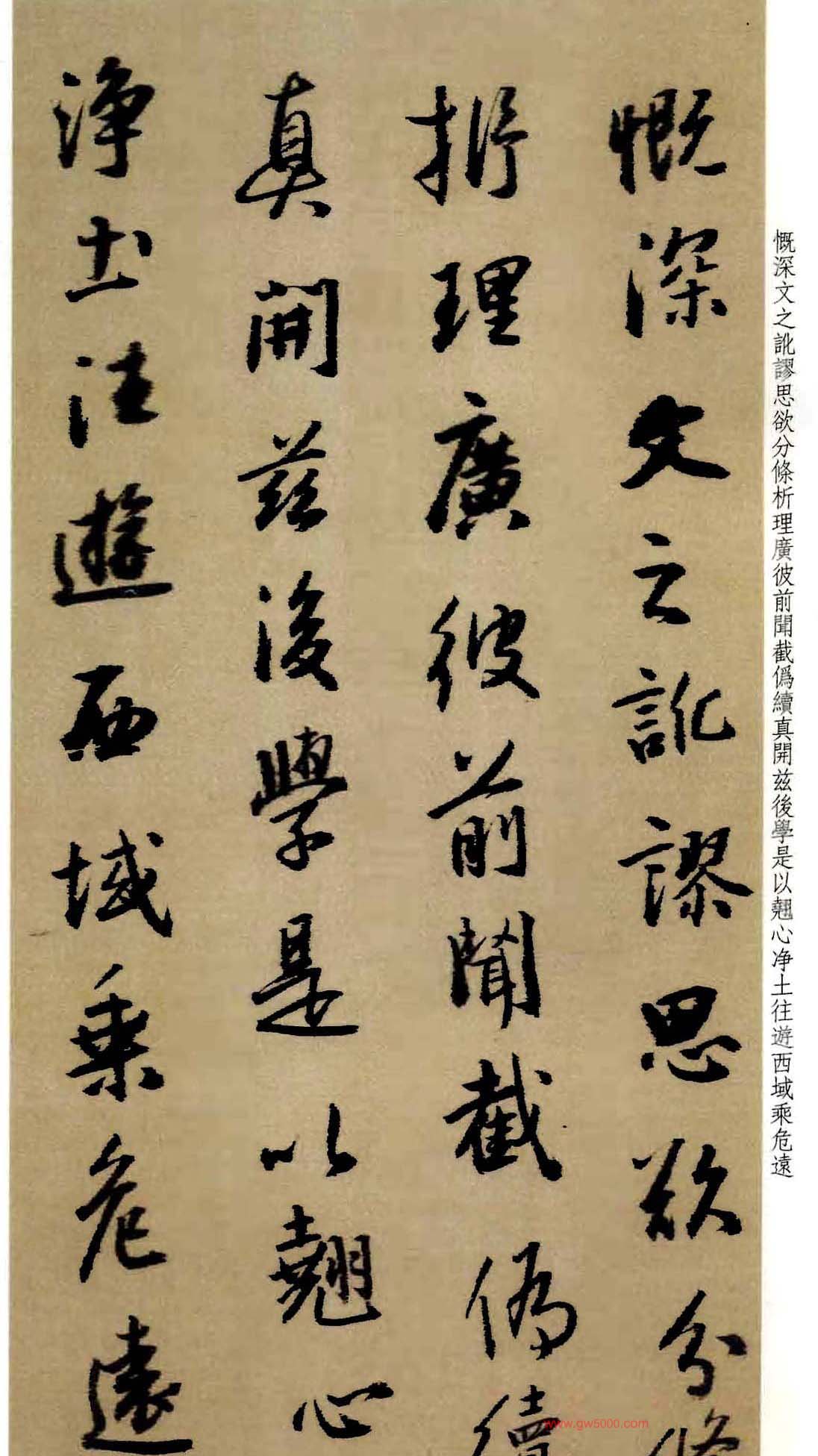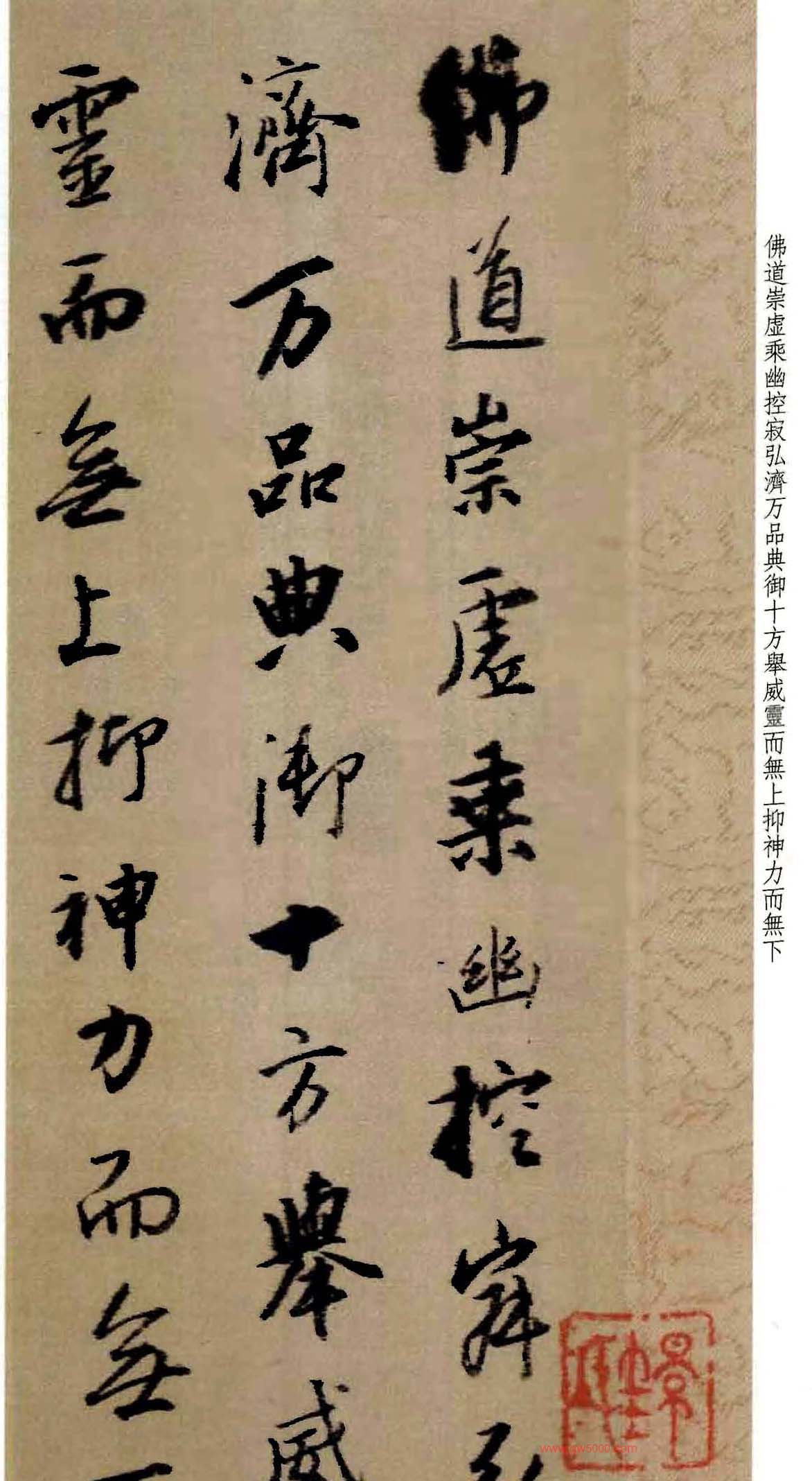 王铎13岁始临习王羲之《圣教序》。三年后,字字逼肖。《为景圭先生临圣教序册》书于1625年明天启五年乙丑王铎34岁。