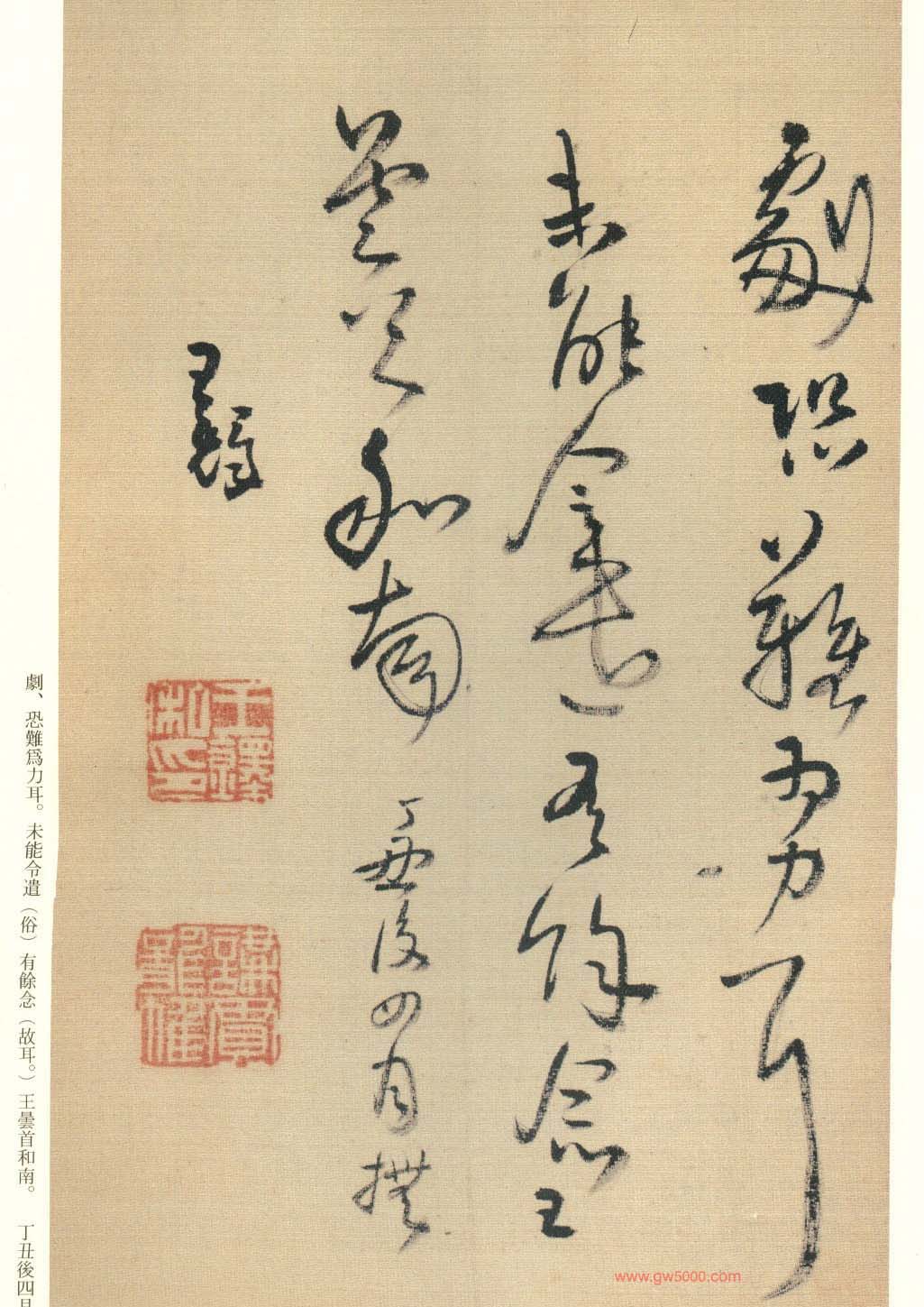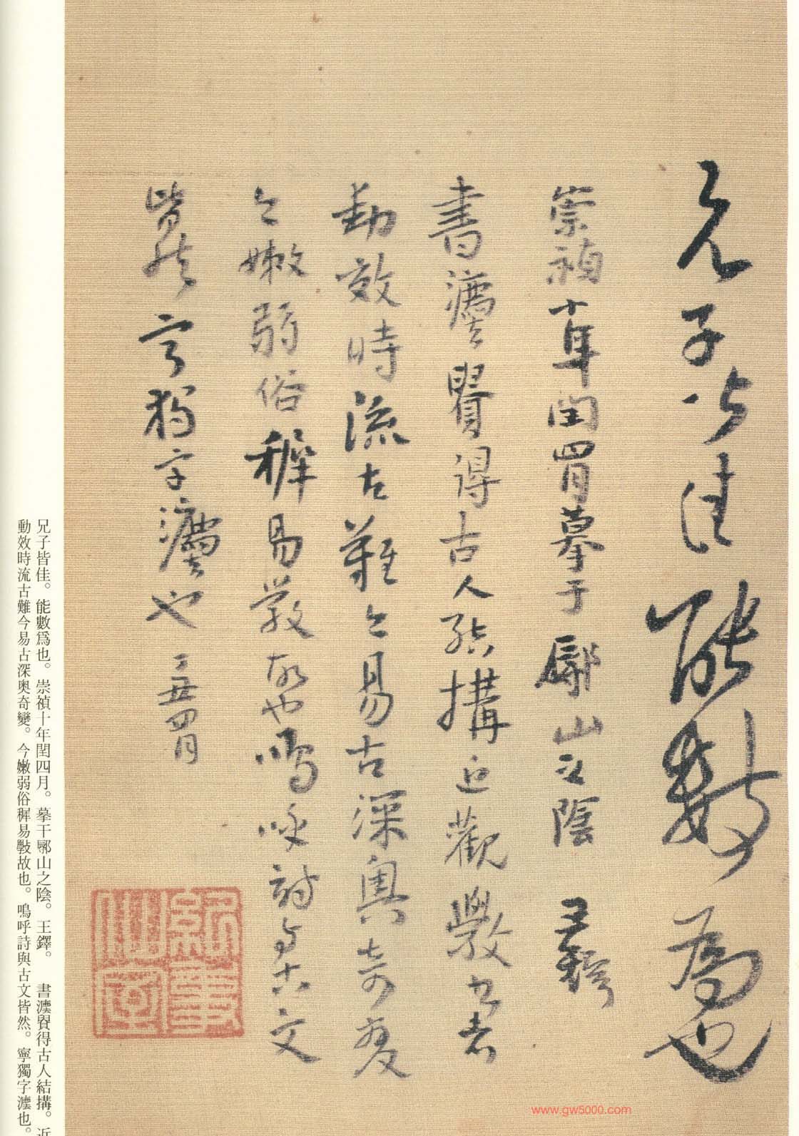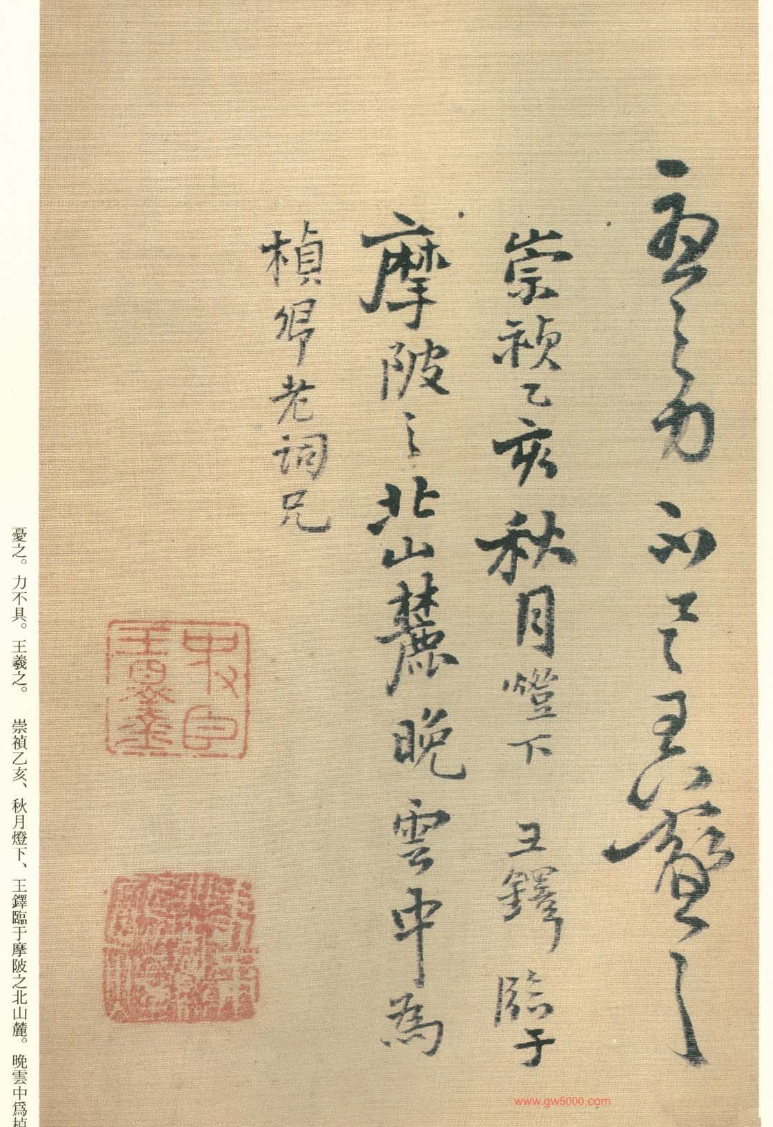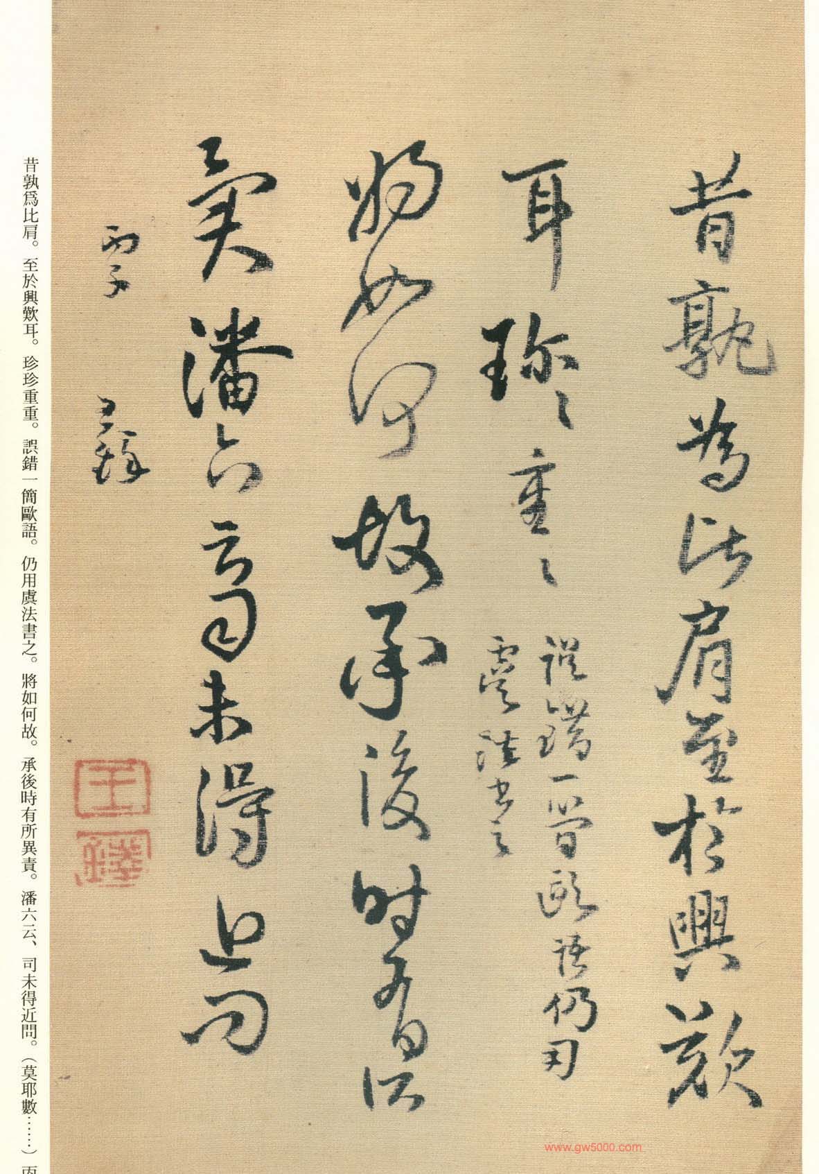 王铎的书法上追“二王”,尤以王献之为主,广泛涉猎魏晋唐宋诸名家,对阁帖的研究最为深入,王铎44岁-46岁三年间遍临《淳化阁帖》的晋唐名迹,几可达到乱真的境地。