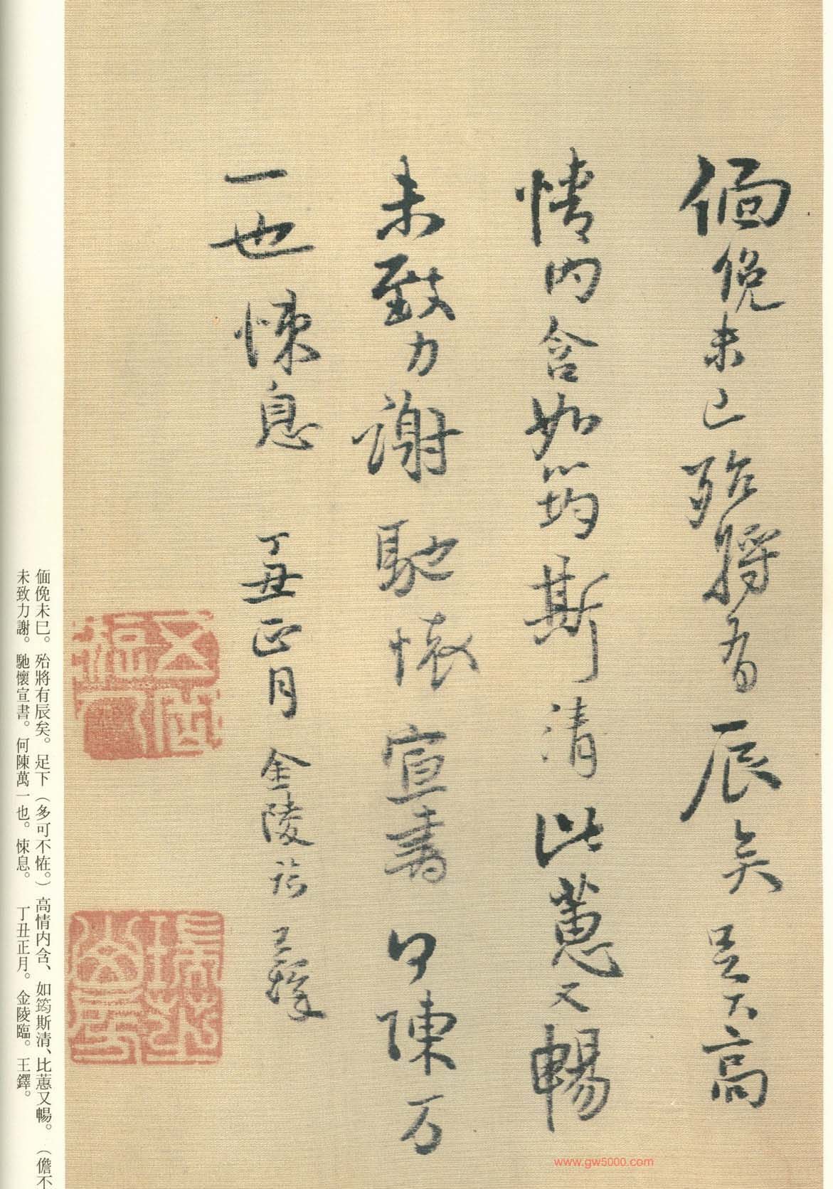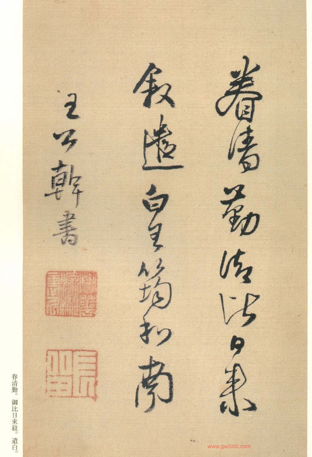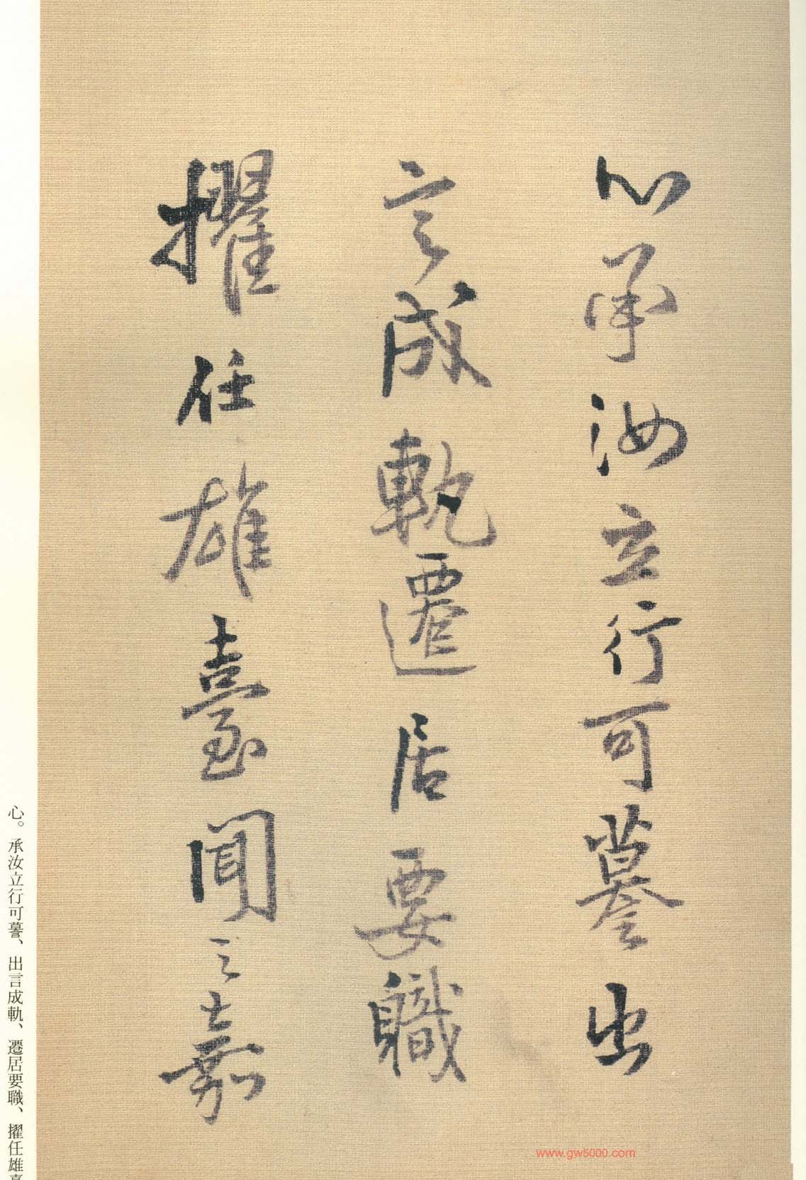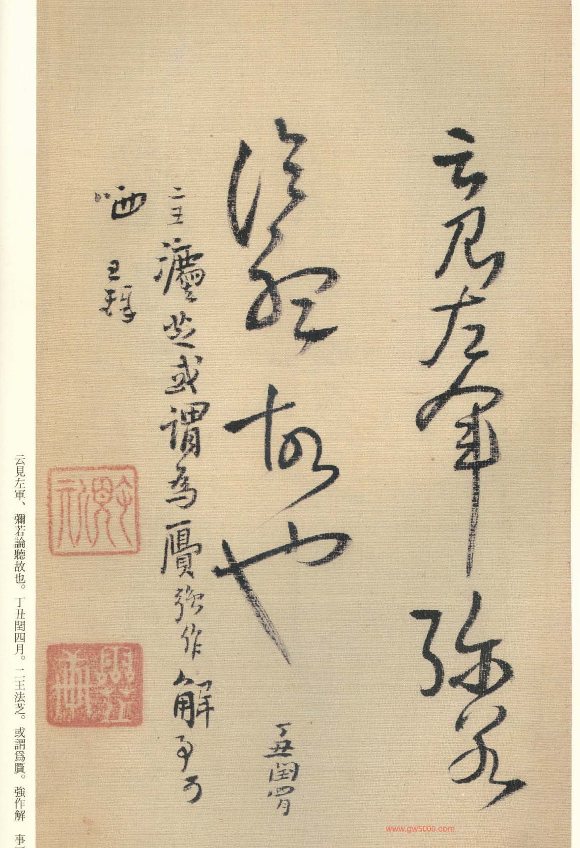 王铎的书法上追“二王”,尤以王献之为主,广泛涉猎魏晋唐宋诸名家,对阁帖的研究最为深入,王铎44岁-46岁三年间遍临《淳化阁帖》的晋唐名迹,几可达到乱真的境地。