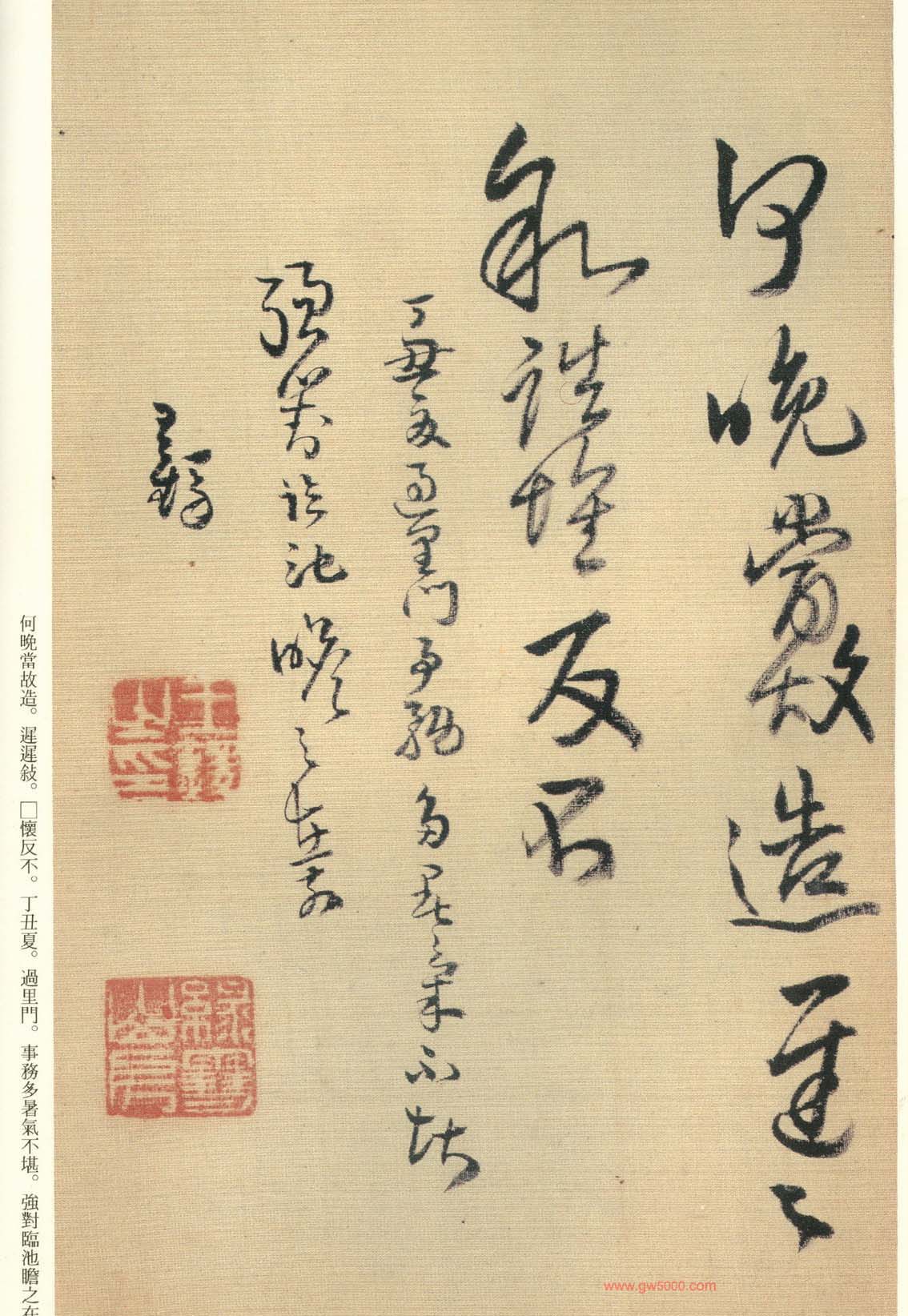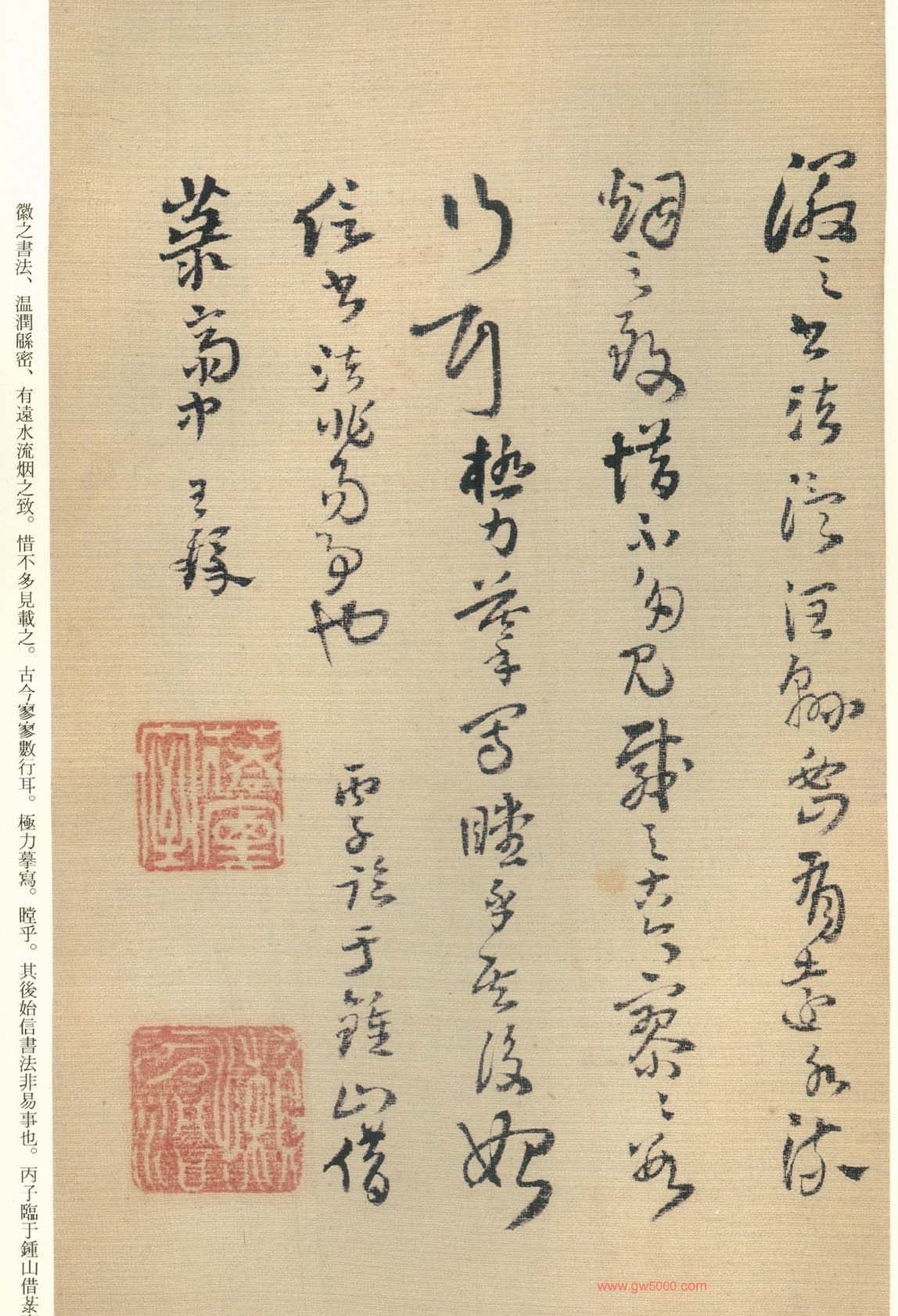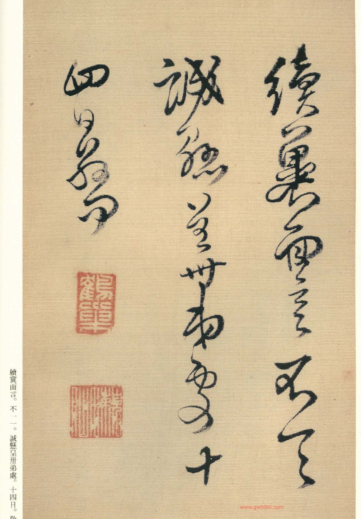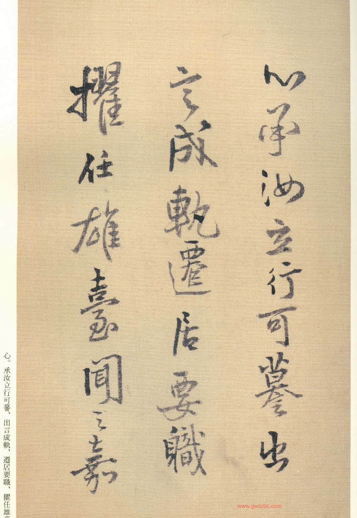 王铎的书法上追“二王”,尤以王献之为主,广泛涉猎魏晋唐宋诸名家,对阁帖的研究最为深入,王铎44岁-46岁三年间遍临《淳化阁帖》的晋唐名迹,几可达到乱真的境地。
