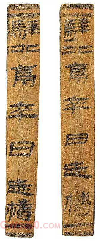 《金关简》所见篆书笔画圆润、粗细均匀、字形结构对称细长,有的笔画书写夸张。这些篆书简大多是残简或二次书简,也有的篆字书写在弃简的空白处,因此简文上的篆书大多为屯戍人员的习字所作。
