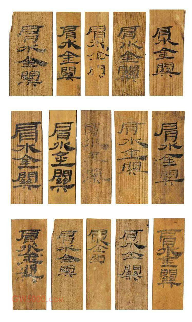 《金关简》中篆书简十七枚, 其中干支简十一枚、文书简二枚、检楬简二枚、内容不明简二枚,共计七十二字(计重复),其中干支类的四十二字(计重复),这些干支文字无对应关系,并不表示纪年或日期,或屯戍人员为平日书写练习之作。日常的官私文书、账薄、符券、邮书刺课等文书中未见篆书的使用。