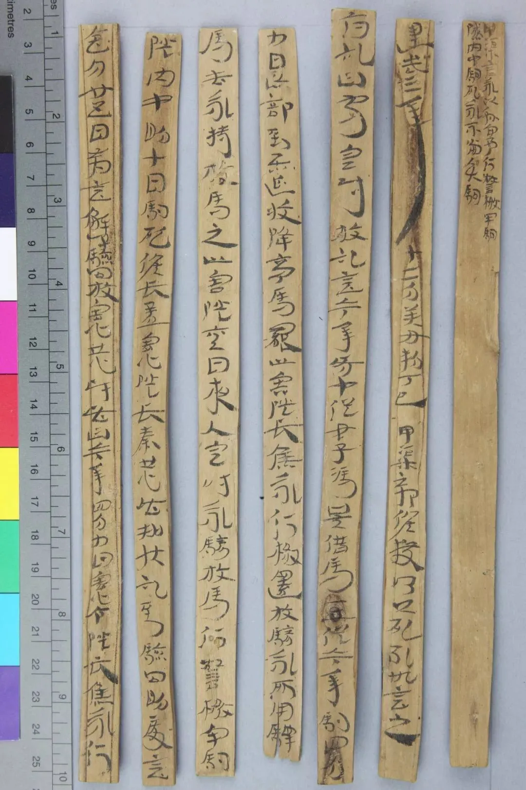 《误死马驹册》属居延简中较具艺术水准的章草作品。启功先生描述汉代章草时说:“汉代草书简牍中的字样,多半是汉隶的架势,而简易地、快速地写去。所以无论一字中间如何简单,而收笔常带出燕尾的波脚。且两字之间绝不相连。”日常草体到西汉末发展成一套约定俗成的技法,《误死马驹册》可谓两汉之交代表性章草样式之一。