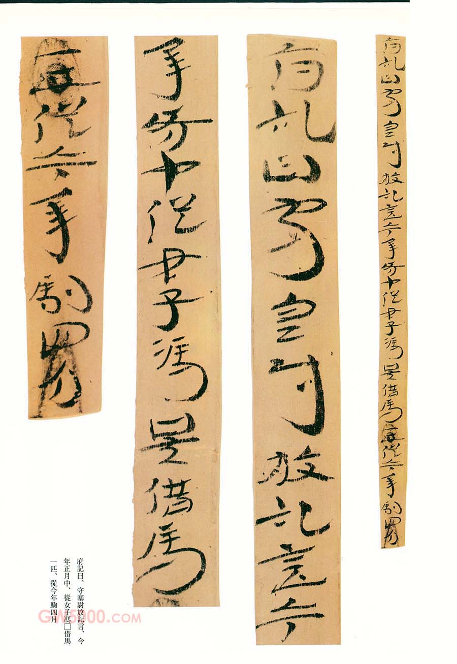 此幅汉简章草写得十分率意,是民间书手之作。正是这些民间书手的长期书写和约定俗成,才使隶书写来更加便捷,并渐渐出现了隶书的草化,这种草化孕育着章草的从这件简书来看是最清楚不过的了。