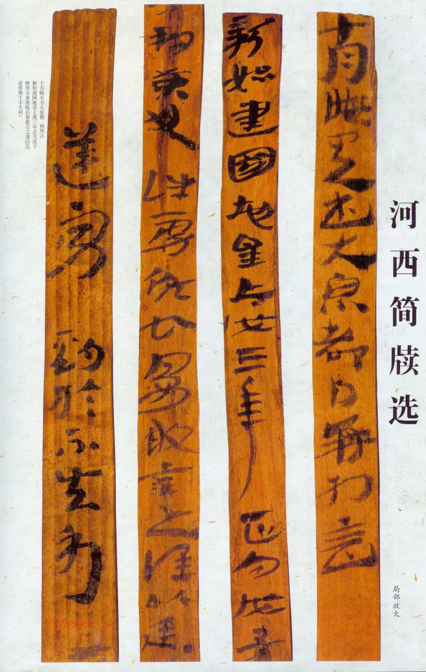 西汉武帝时期为解除匈奴在西北的长期威胁,出兵河西屯边、屯田,随着汉代对这一地区的经营,出现了大量的简牍文书,这些文书在河西这种特殊的自然条件下得到良好的保护。今天,河西地区成为了中国古代简牍最丰富的蕴藏地之一。
