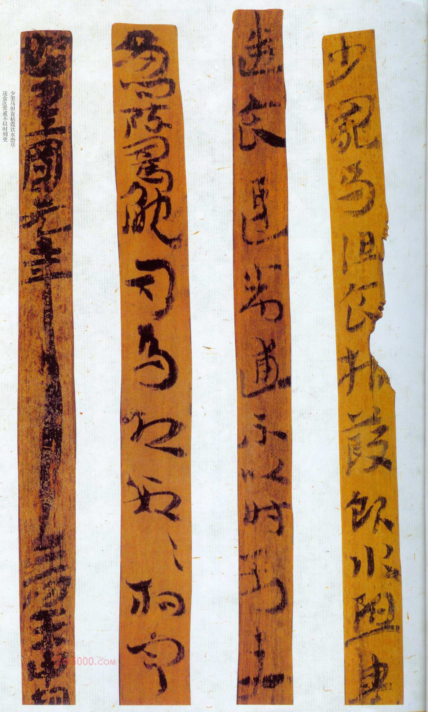 一九七一年,甘肃省博物馆在甘谷县汉墓中发现二十三枚木简。简长二十三、宽二点六厘米,松木制作,每简书两行,背面上端编写顺序号,连编成册后书写。简文整齐分为三节,可清楚地辨认出整齐秀丽的八分体字,但是大部分简牍已朽碎。