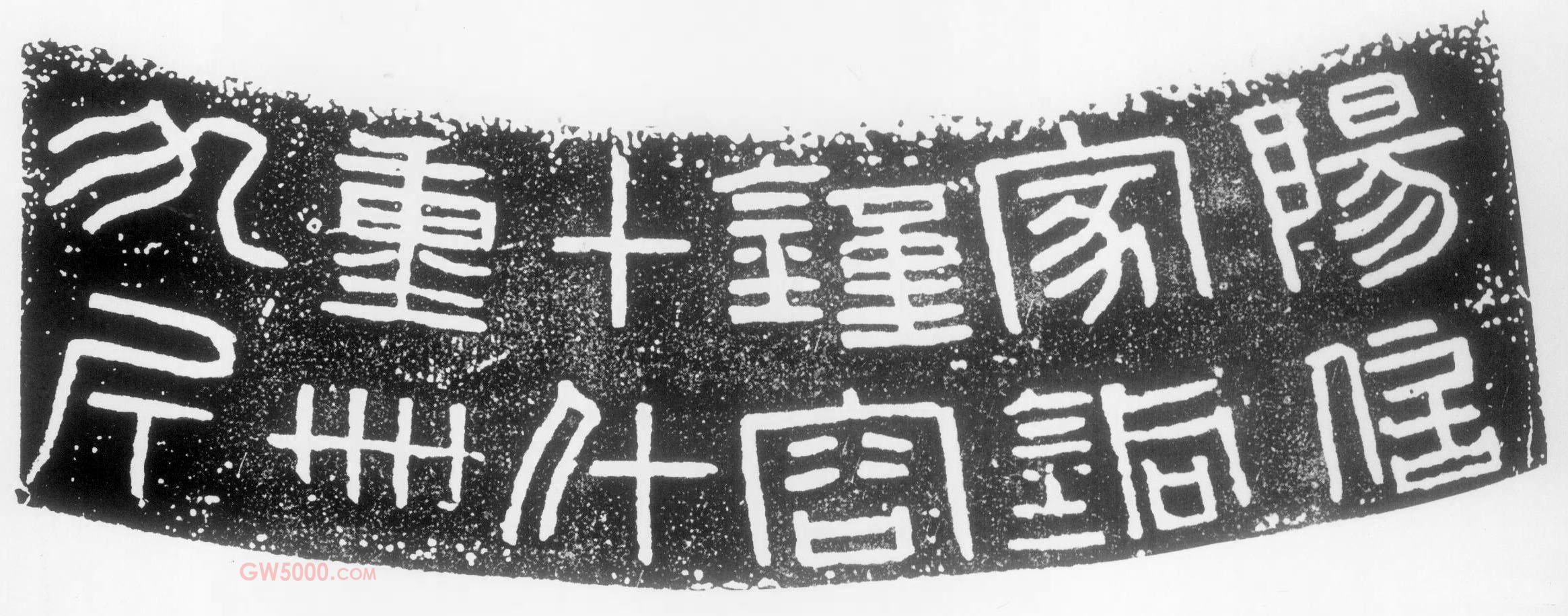 《阳信家钟铭》是西汉中期的一件铜钟,1981年出土于陕西兴平茂陵一号无名氏冢一号从葬坑中,现藏于茂陵博物馆。在这口铜钟的肩部宽带纹饰上,刻有铭文6行12字,为小篆体势,字形扁方、刻画凝重方整,与秦代诏版、权量上的文字一脉相承,也与传世汉代印章上的“摹印篆”书法风格相似,是汉代金文小篆书法作品中规矩一路的典范之作。